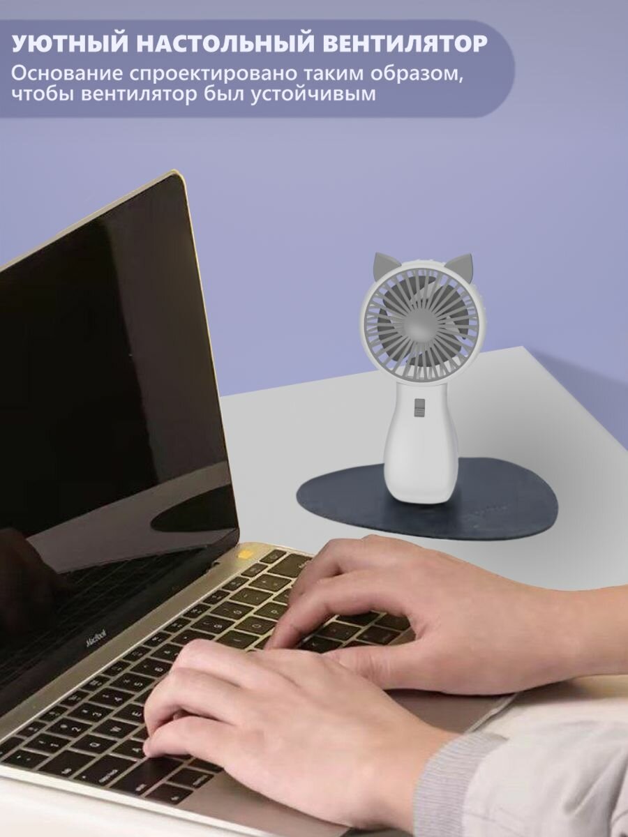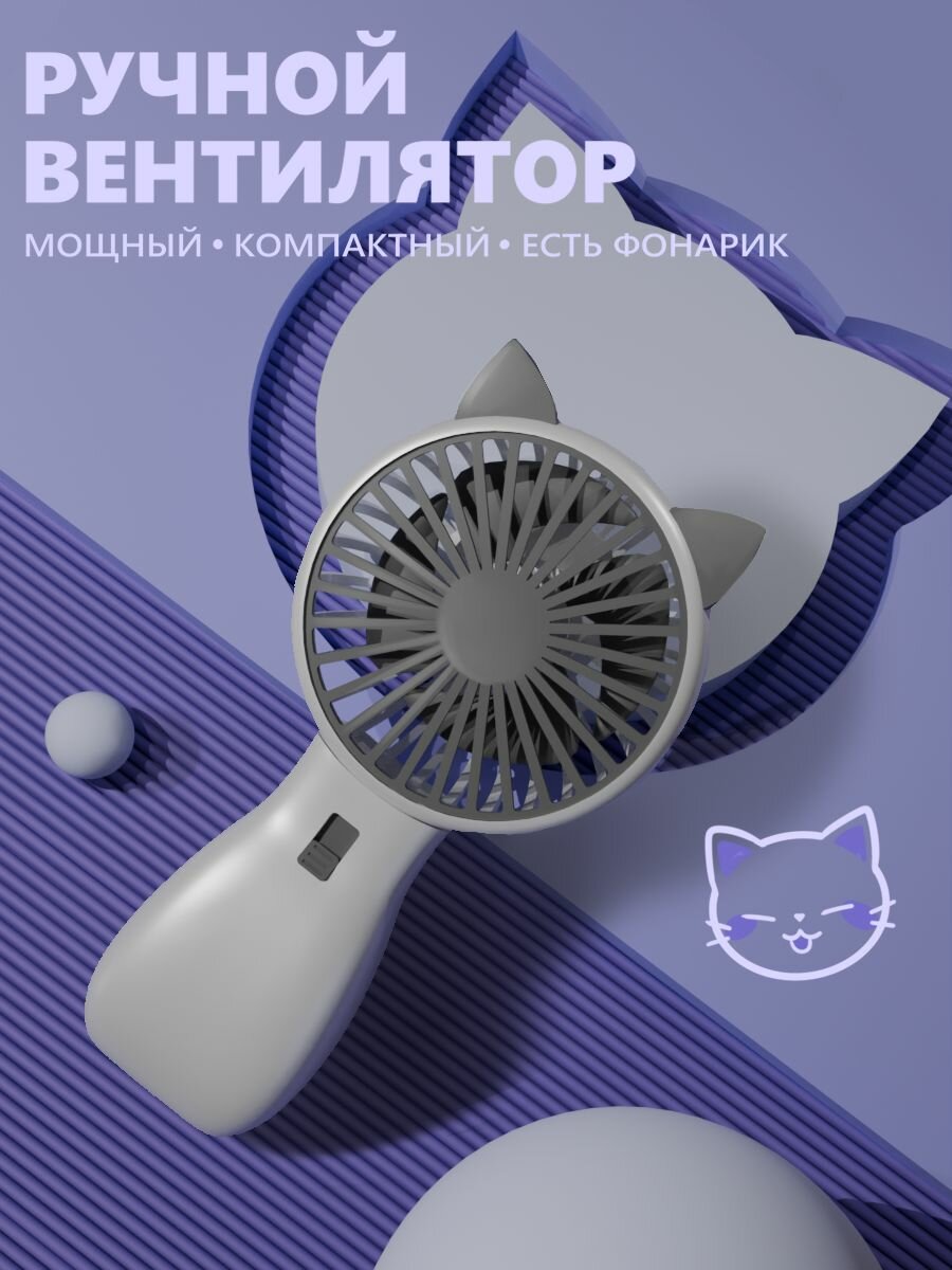 Ручной мини маленький портативный юсб usb вентилятор на аккумуляторе с фонариком с ушками интересное: