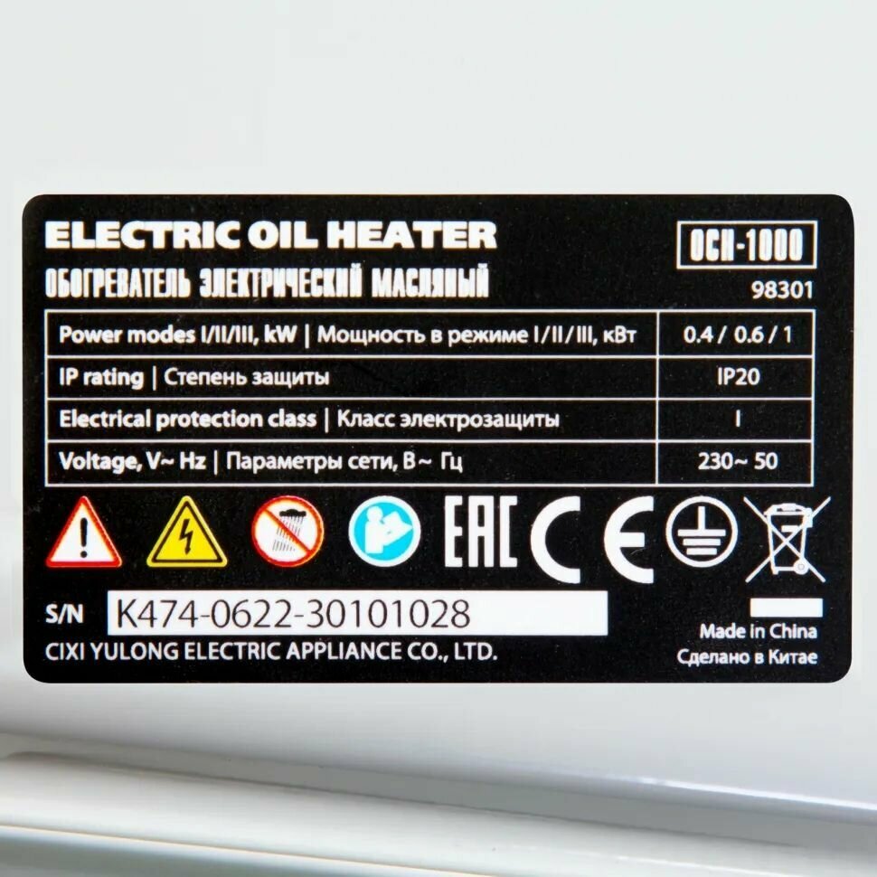 | Тип обогревателя | масляный радиатор |