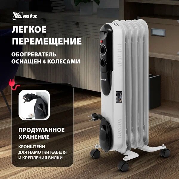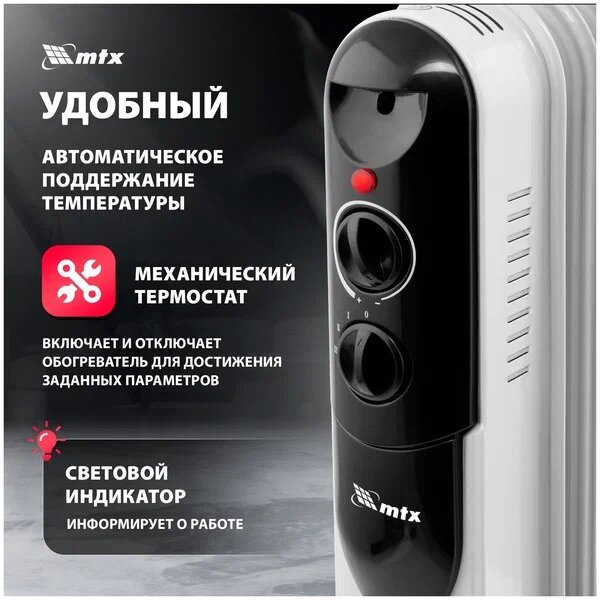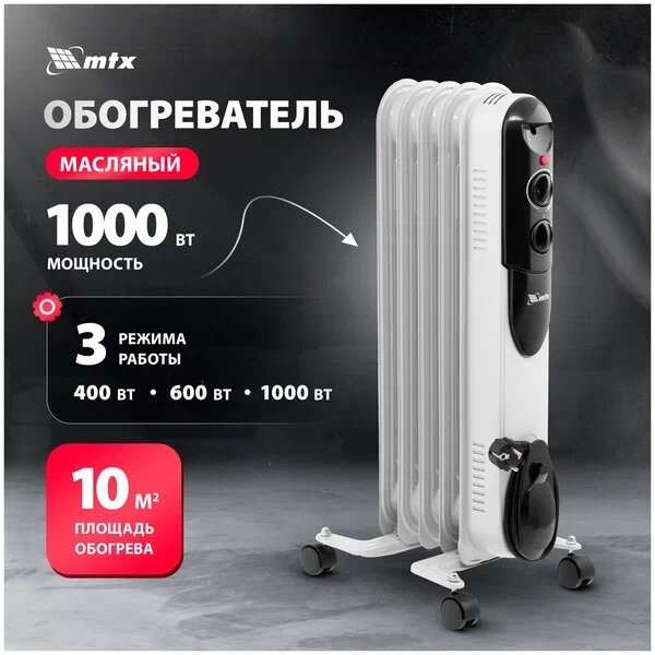 Обогреватель масляный 1000 Вт, 220 В, Тепло выгодно // MTX интересное: