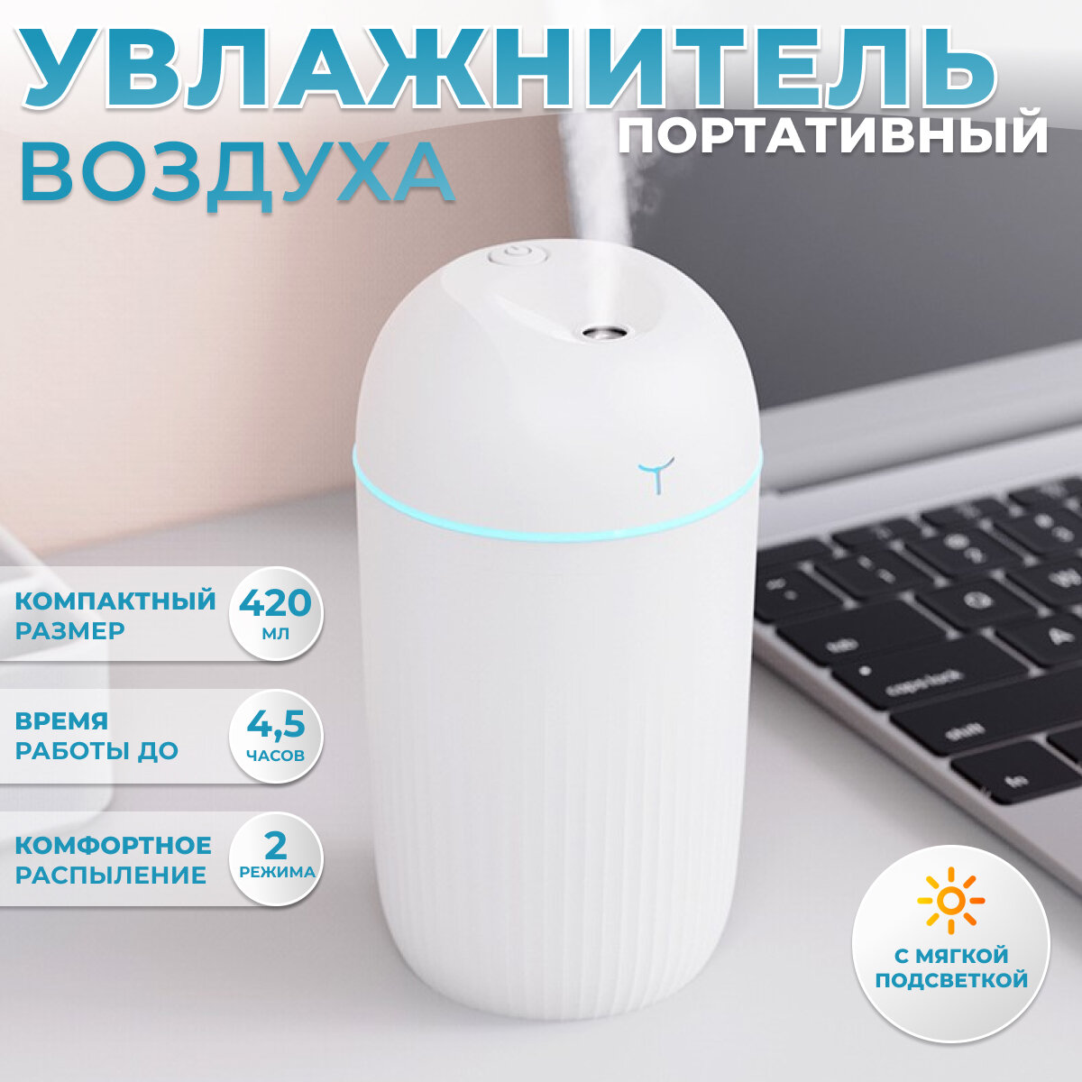 Купить Увлажнитель воздуха c мягкой подсветкой ультразвуковой, 2 режима, компактный - для дома и офиса, 420 мл, белый