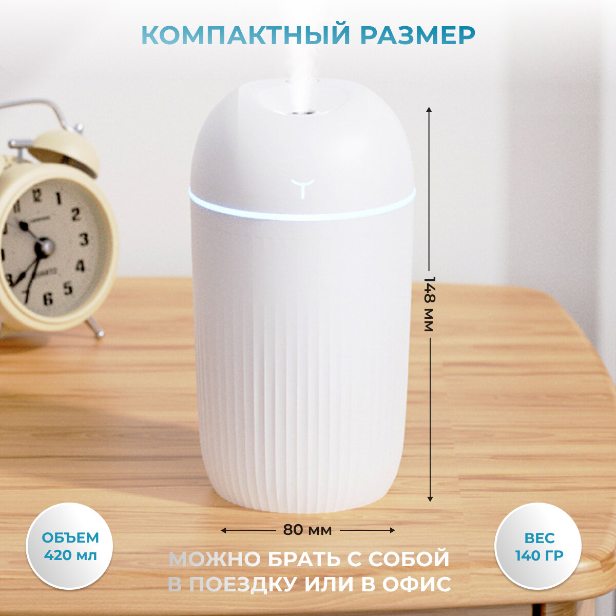 Увлажнитель воздуха c мягкой подсветкой ультразвуковой, 2 режима, компактный - для дома и офиса, 420 мл, белый интересное: