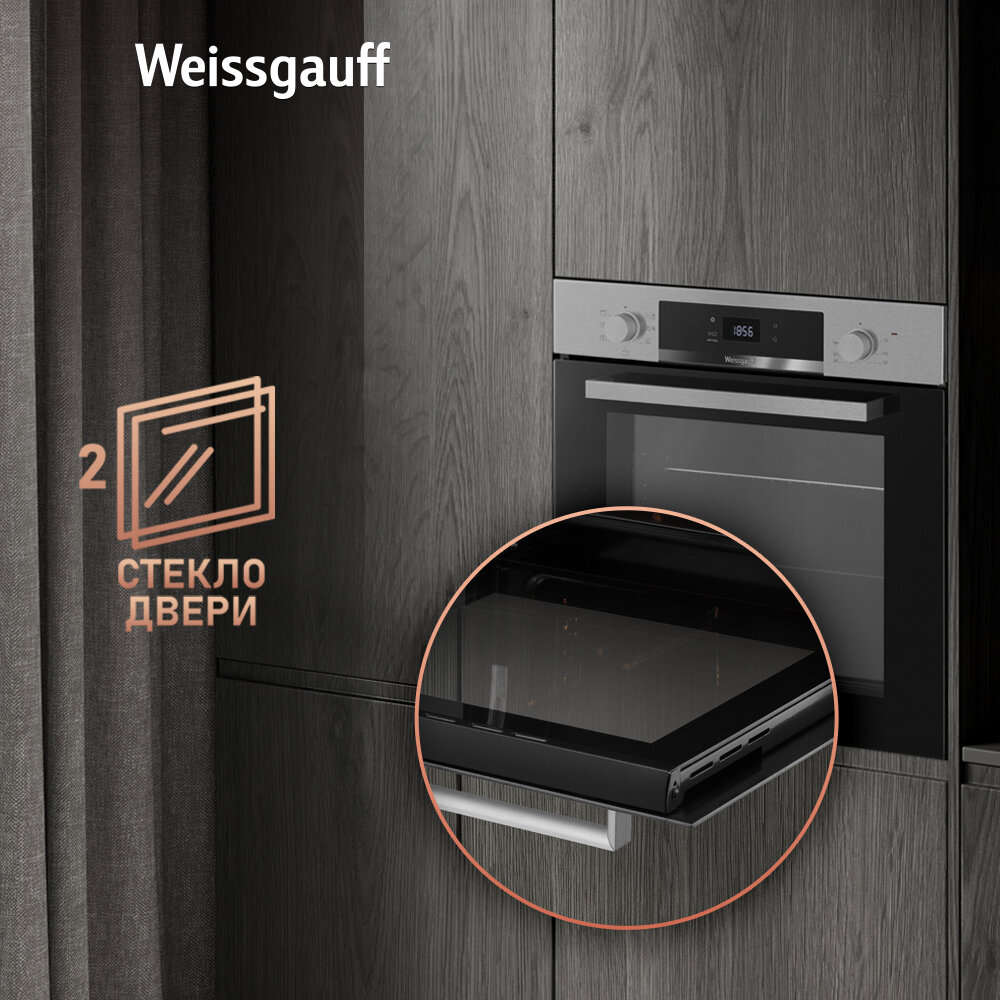 Духовой шкаф Weissgauff EOV 770 PDX каталитическая очистка, двойное стекло дверцы, эмаль, сенсорное управление