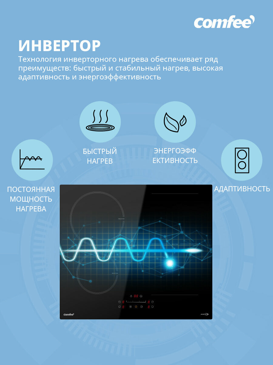 Встраиваемая индукционная варочная панель Comfee CIH611, Inverter,Flex Zone интересное: