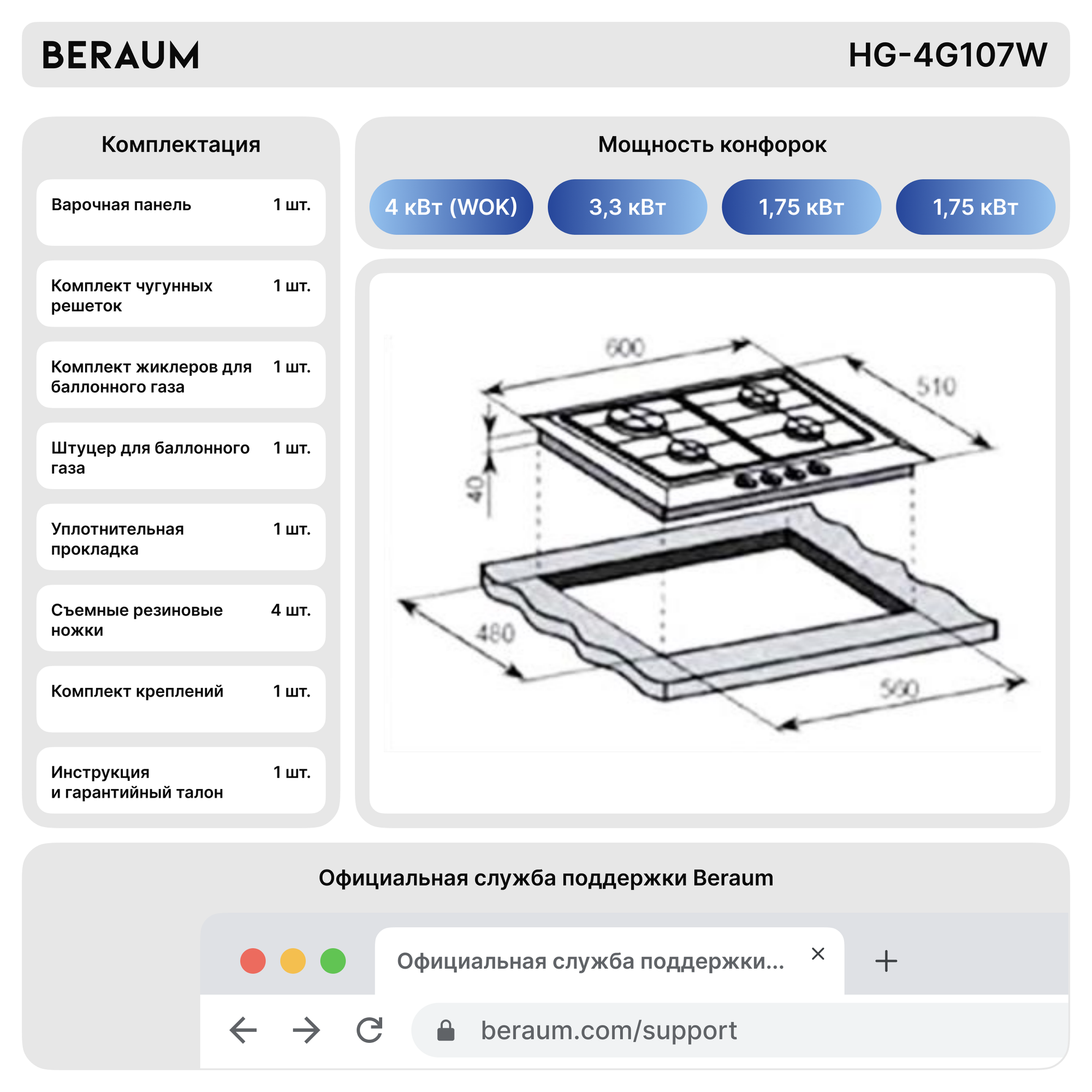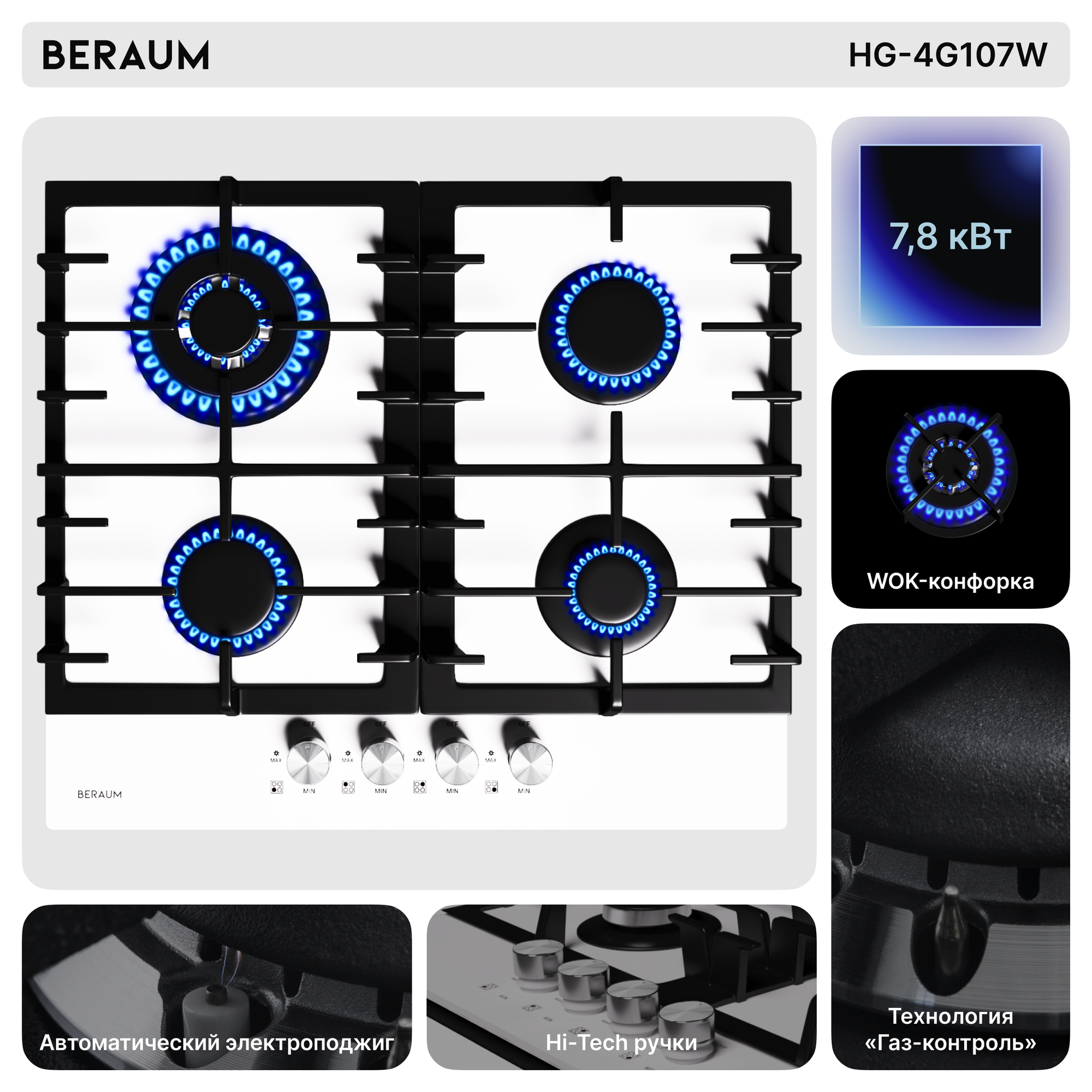 Газовая варочная панель Beraum HG-4G107W с газ-контролем интересное: