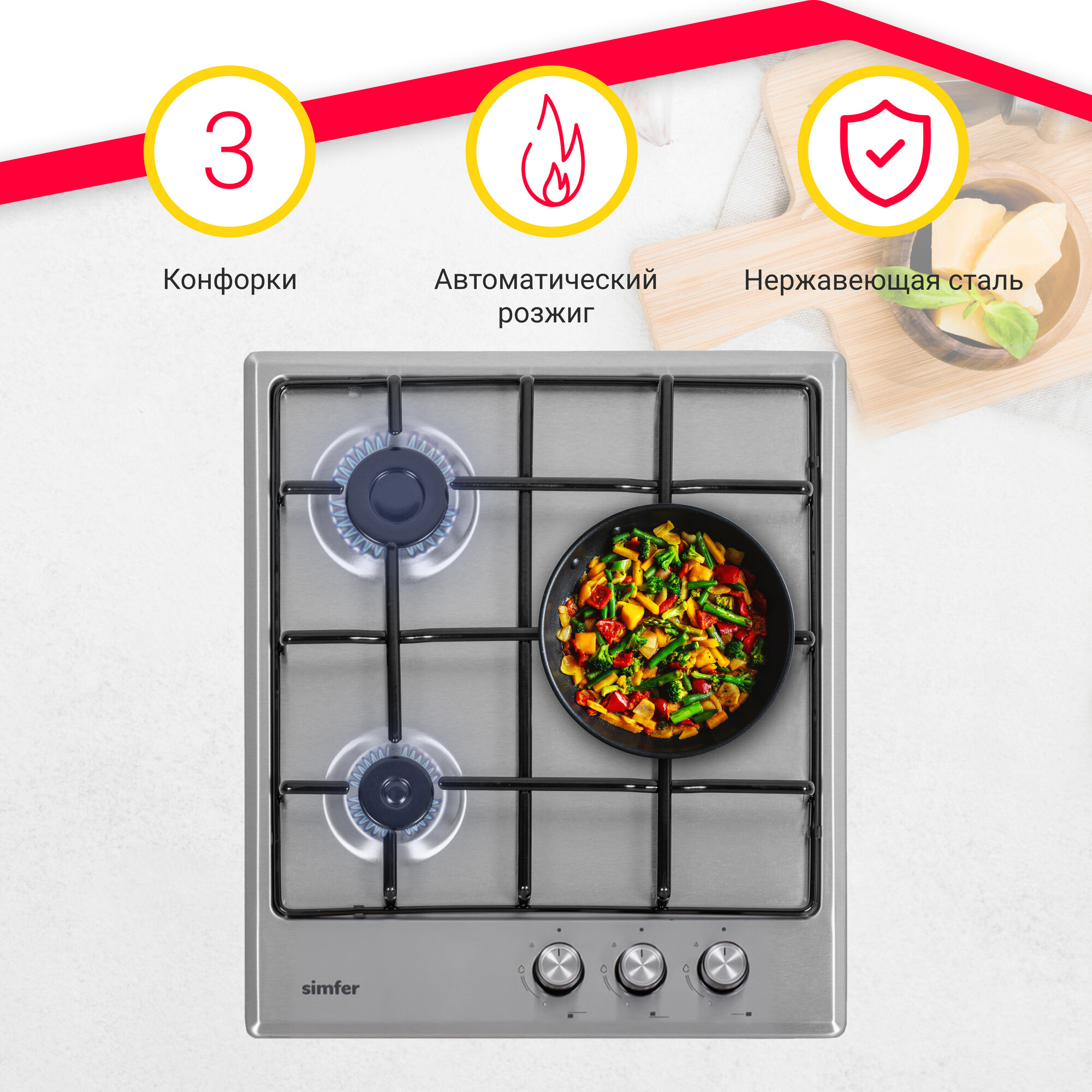 Газовая варочная панель Simfer H45V30M470 (эмалированные решетки, автоподжиг, серебристая) интересное: