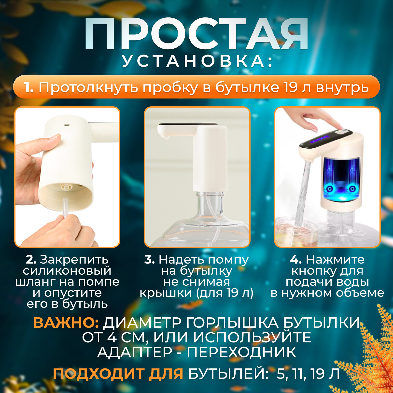 Помпа для воды электрическая с двойным насосом для бутылей 5л, 11л, 19л литров, белая интересное: