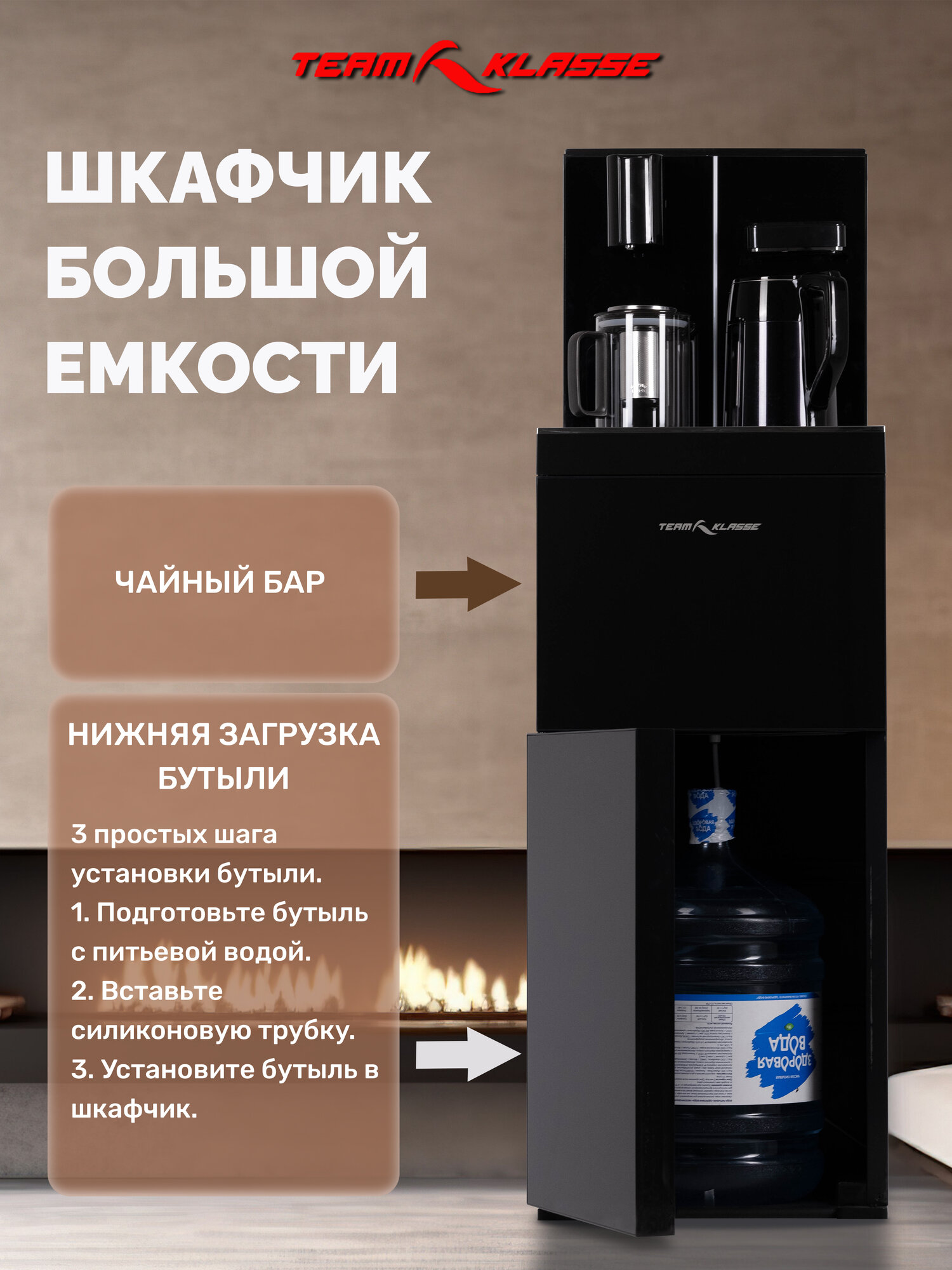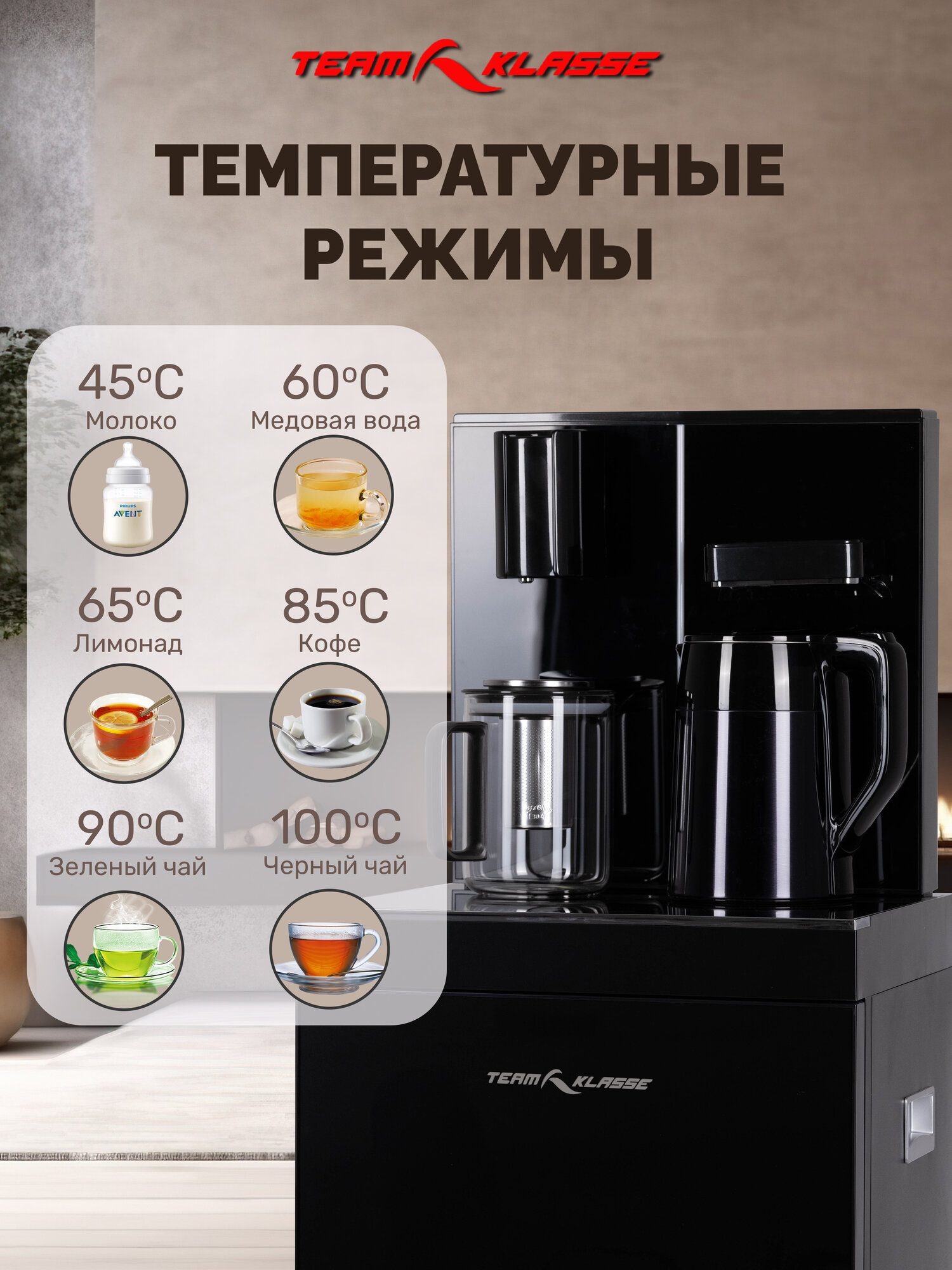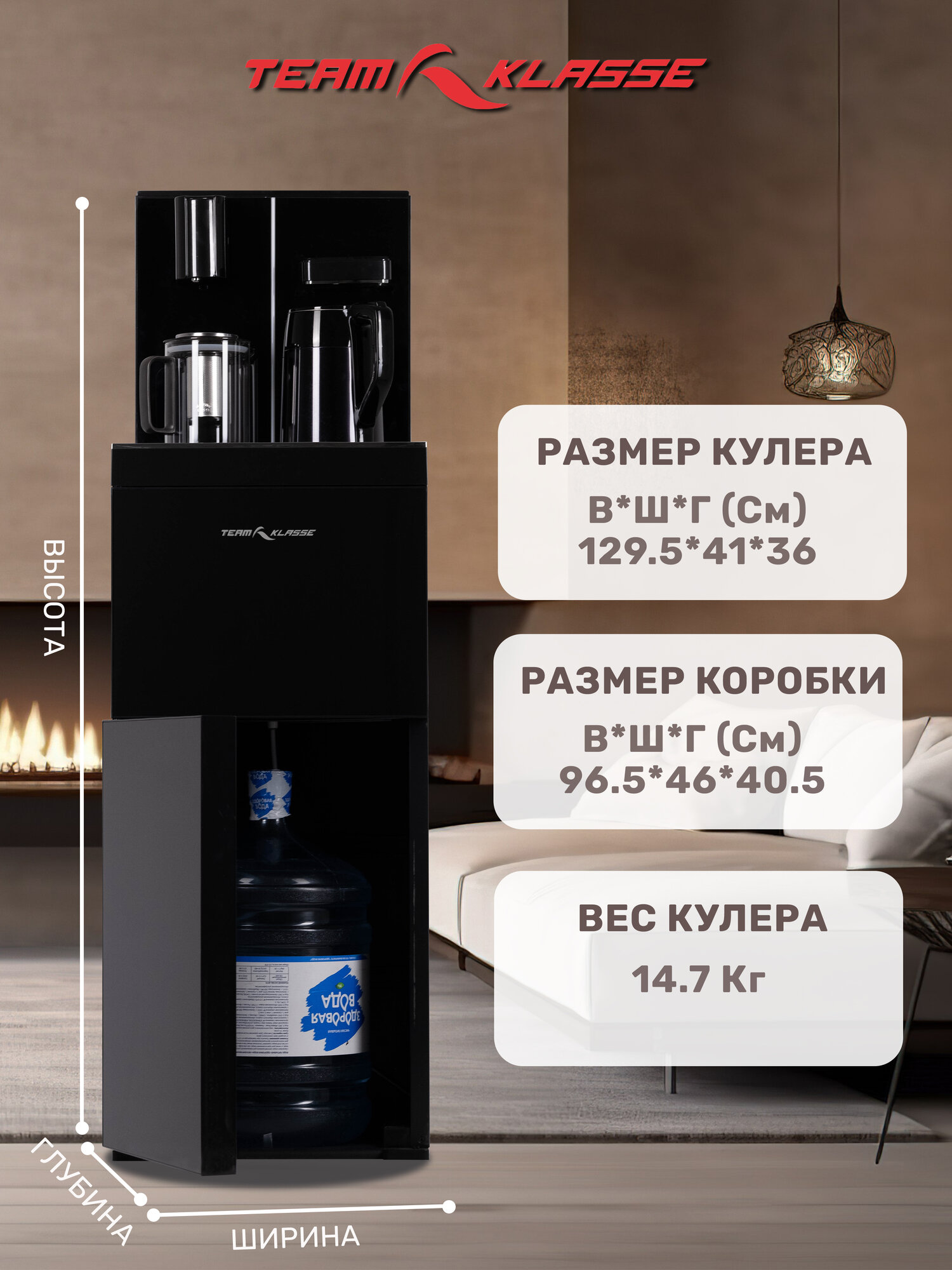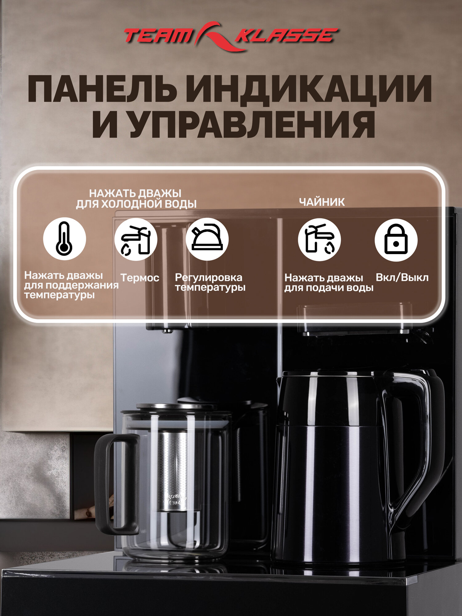 Кулер для воды напольный "Team Klasse" с электронным охлаждением и нагревом, черный интересное: