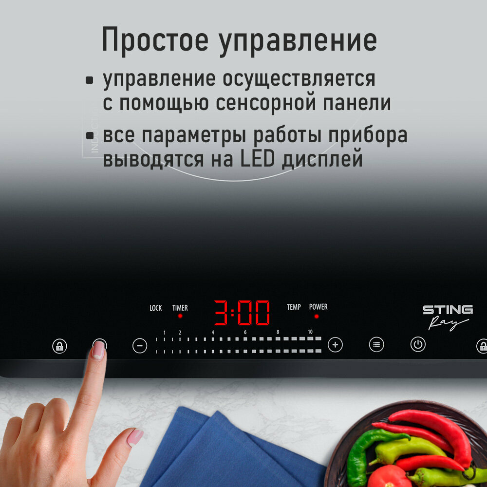 Электрическая индукционная безимпульсная плитка STINGRAY ST-HP3500C черный жемчуг интересное: