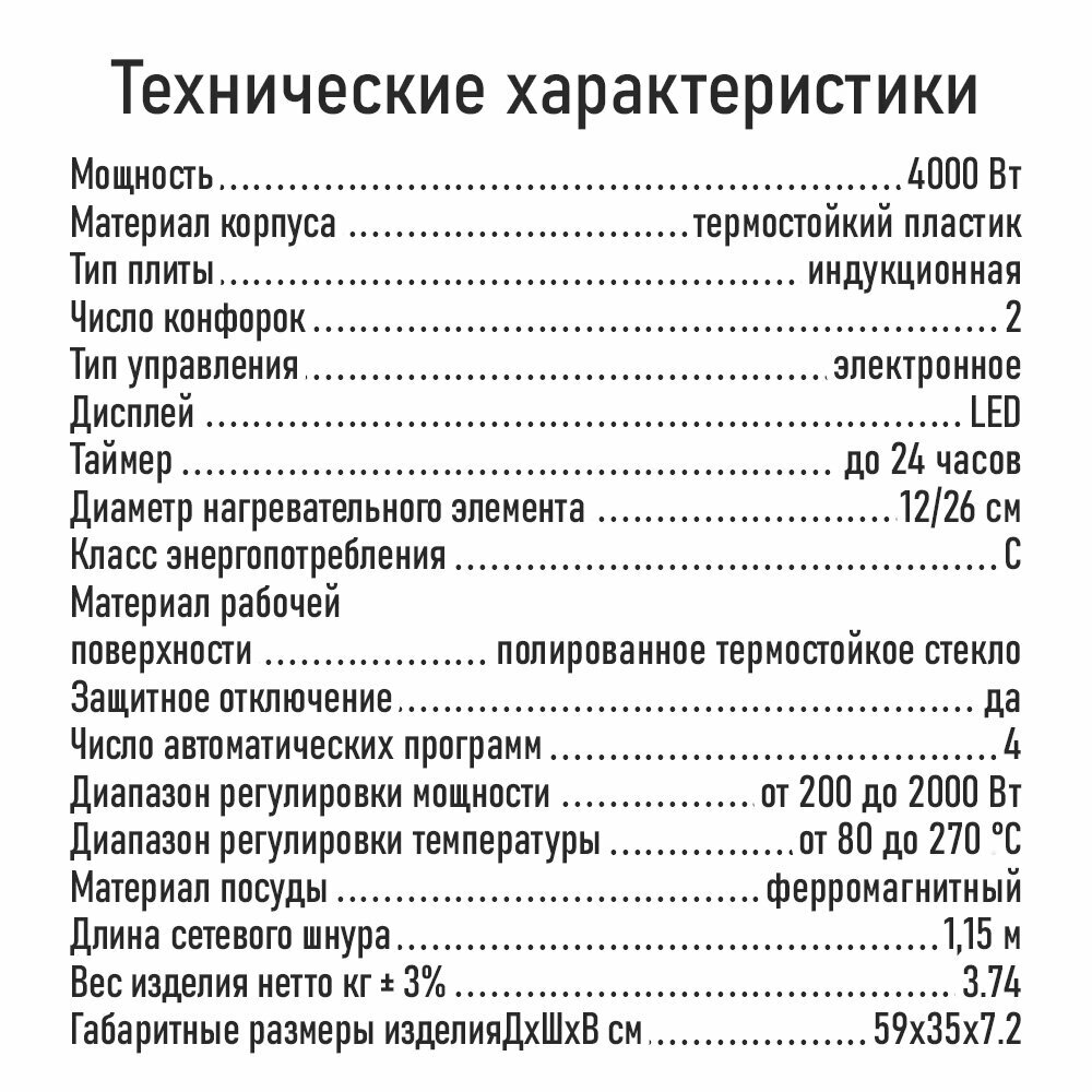 Плита электрическая индукционная, 2 конфорки, 3500 Вт