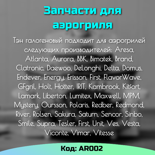 Стеклянный ТЭН для аэрогрилей 1200 - 1400 Вт, диаметр 15 см, AR002 интересное: