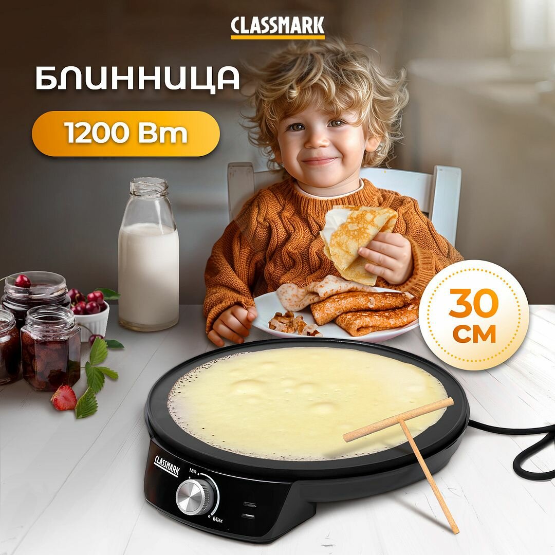 Блинница электрическая Classmark антипригарное покрытие, диаметр тарелки 30 см, мощность 1200 Вт, черный интересное: