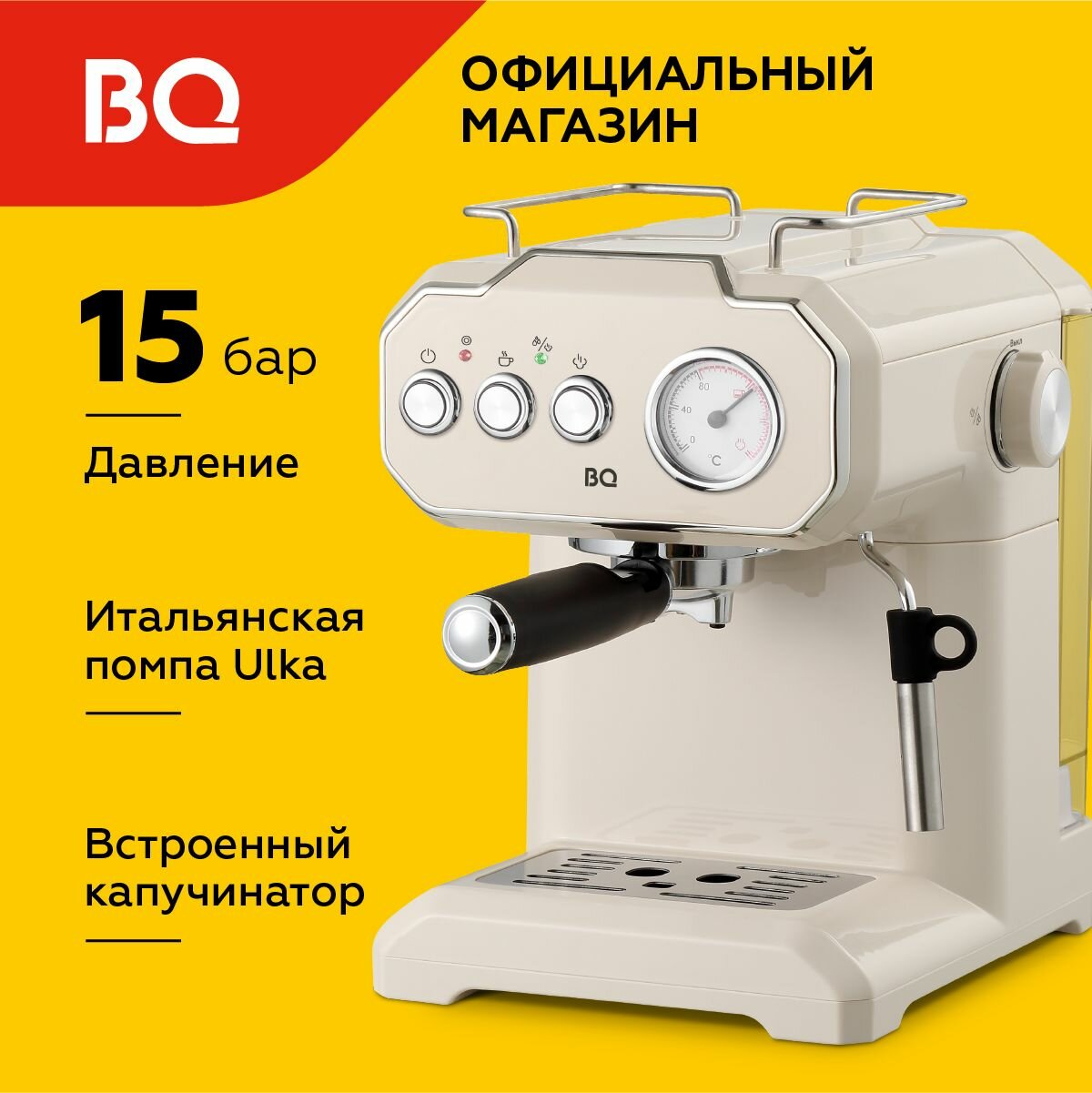 Купить Кофеварка рожковая с капучинатором BQ CM1722 Слоновая кость с подогревом чашек / 850 Вт / 15 бар / 1,75л