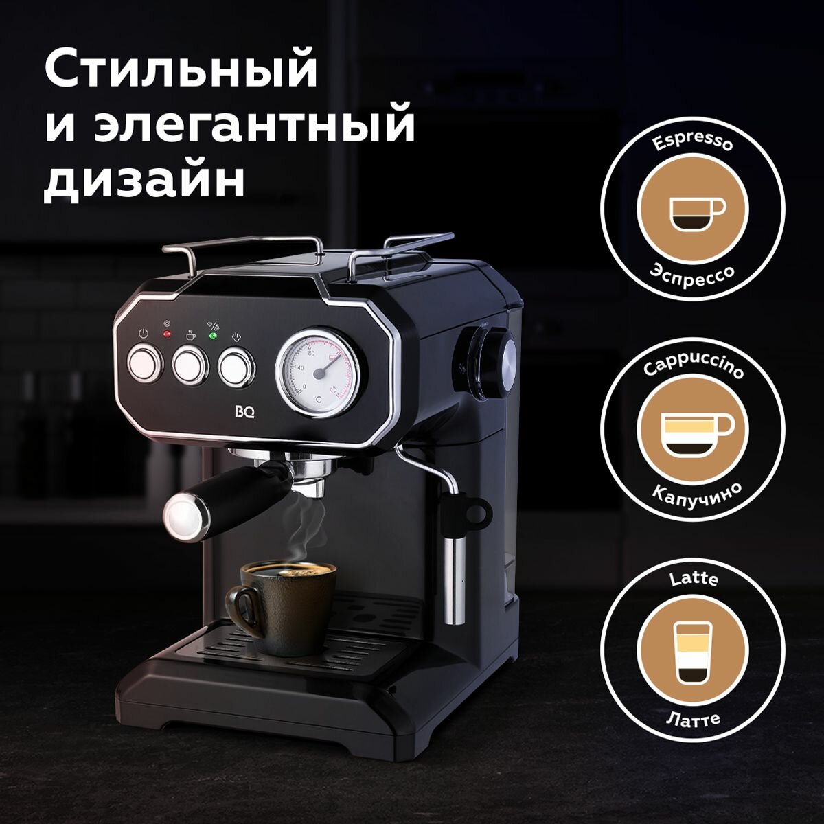 Купить Кофеварка рожковая с капучинатором BQ CM1722 Черная с подогревом чашек / 850 Вт / 15 бар / 1,75л