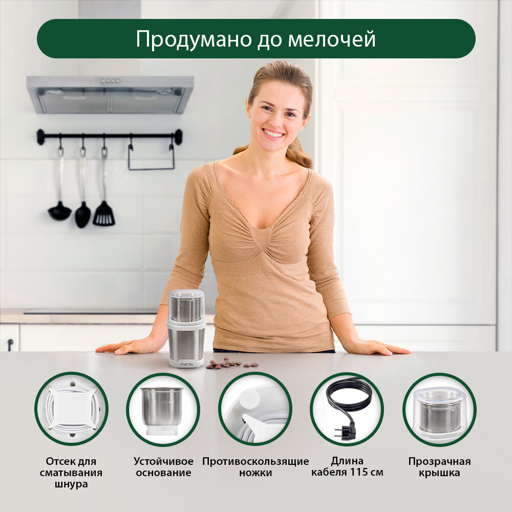 Кофемолка MARTA MT-CG2182A белый жемчуг интересное: