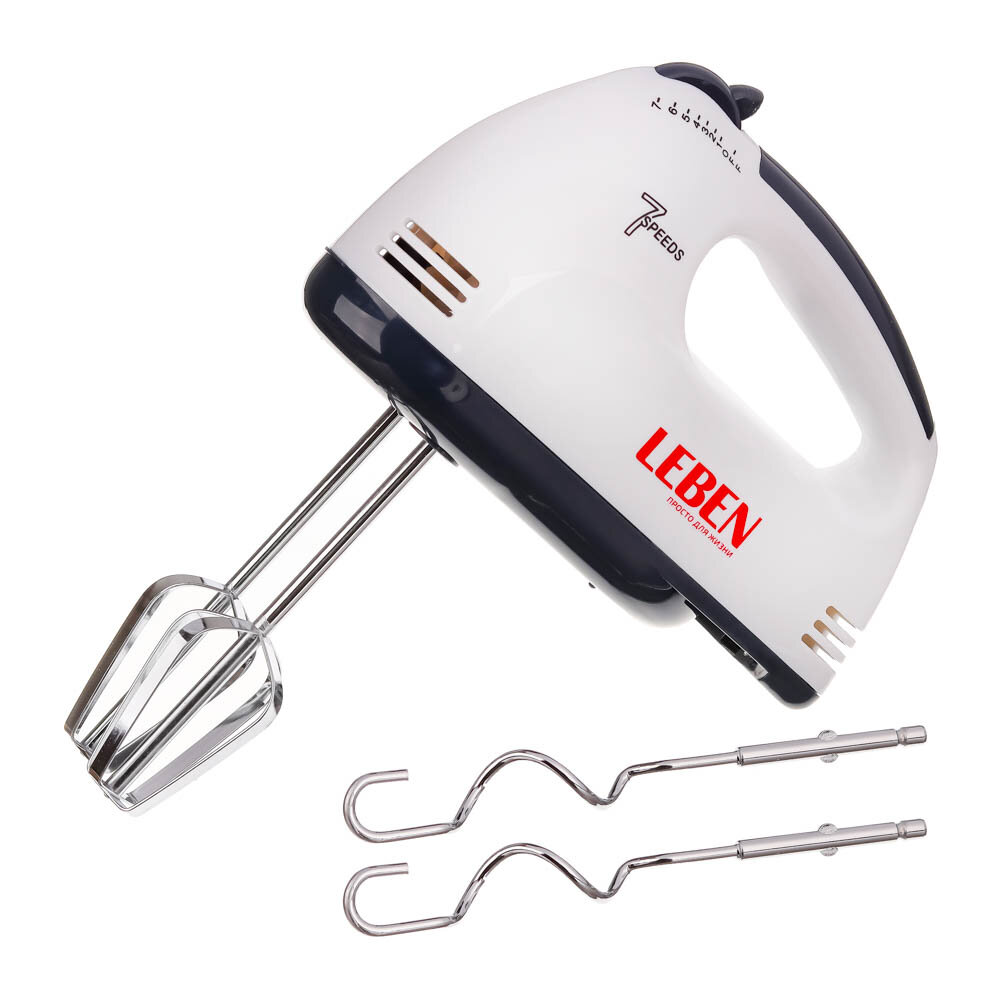 Купить LEBEN Миксер ручной, 100Вт, 7 скоростей, 2 пары насадок из нерж.стали, корпус пластик, 2 штуки