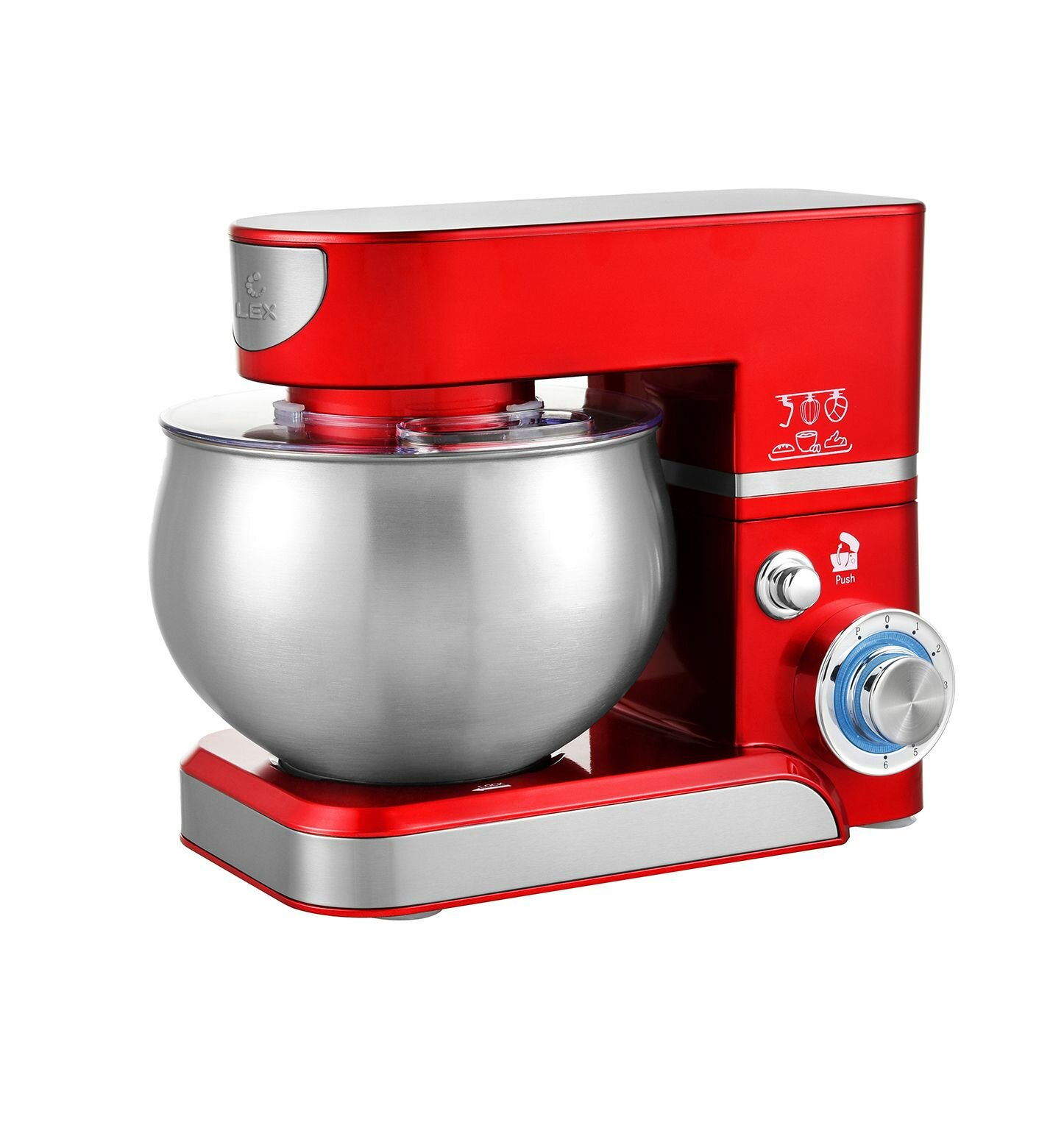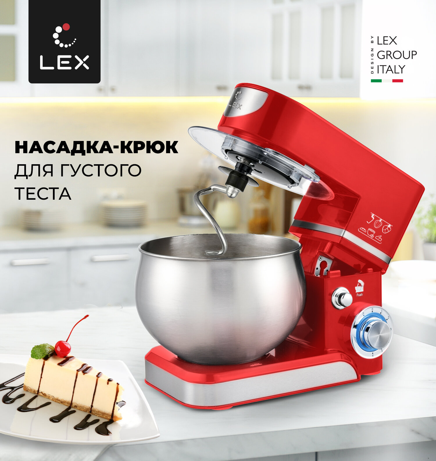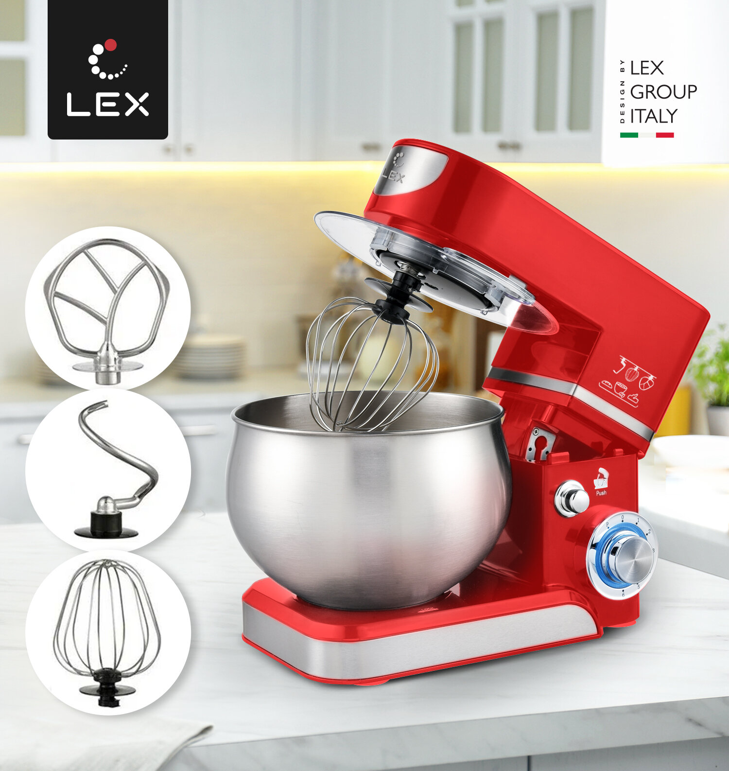 Планетарный миксер LEX LXMX 4130, 1500 Вт, 6 скоростей, чаша 5 л, 3 насадки, красный