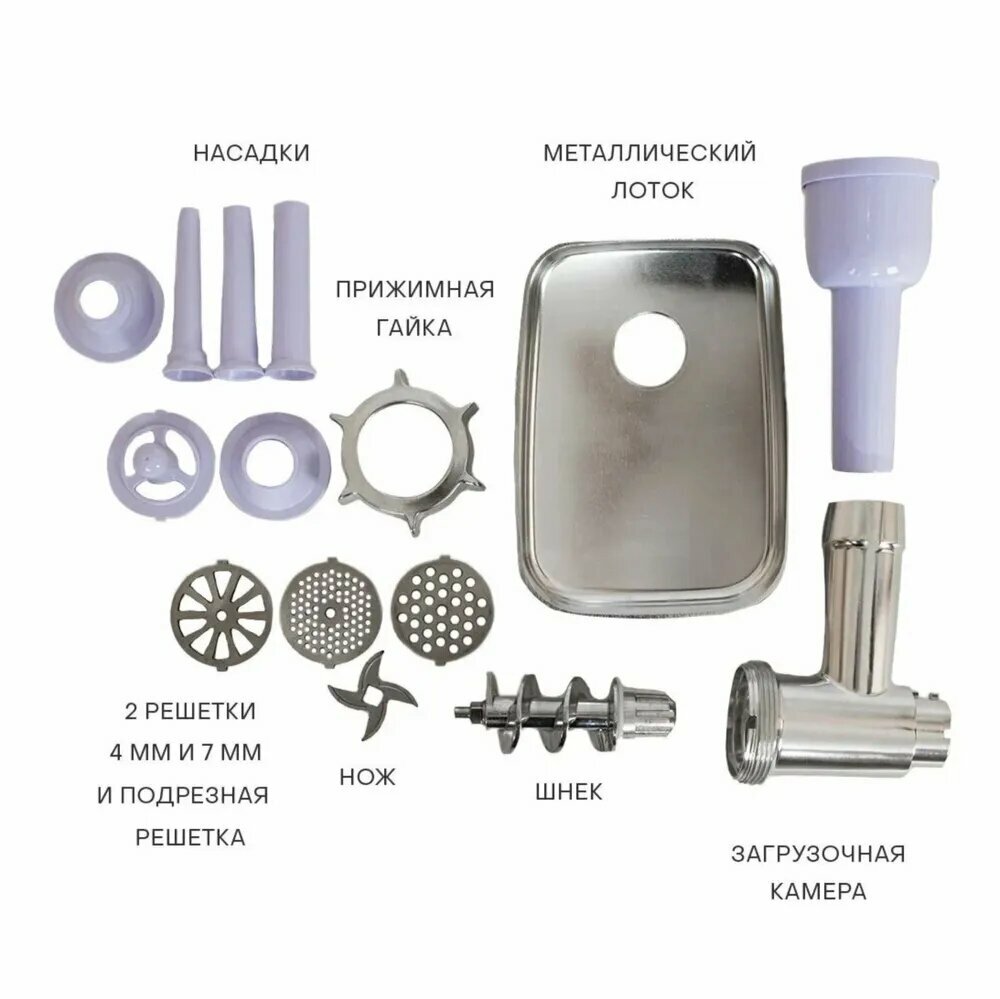 | Насадки | диск для фарша / насадка для приготовления колбас / соковыжималка |