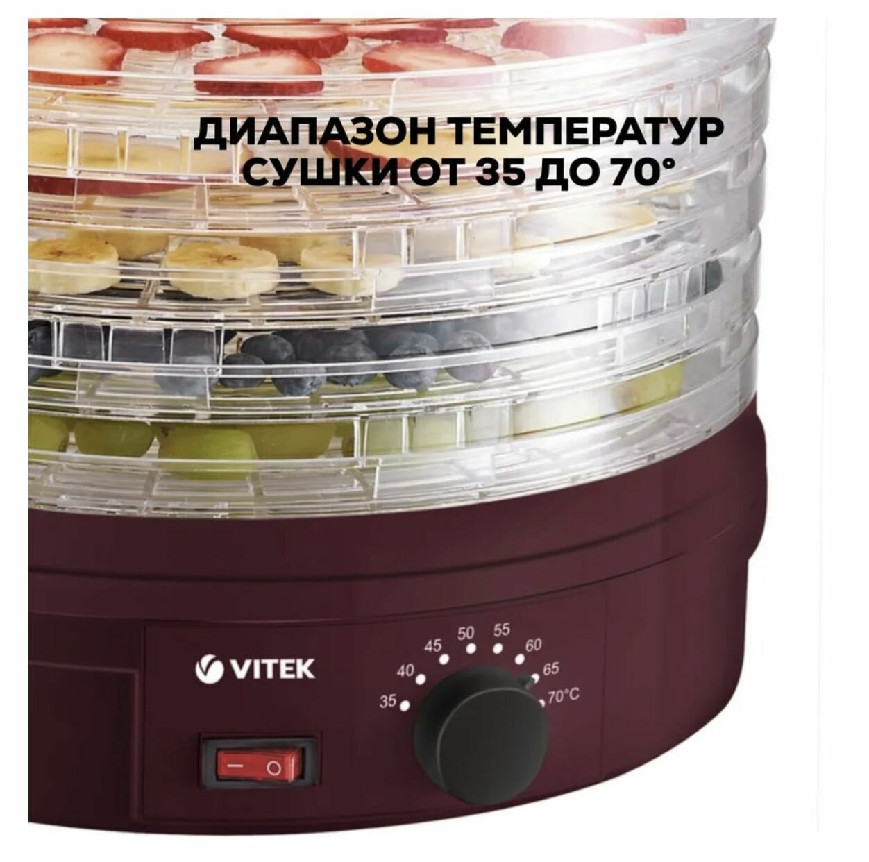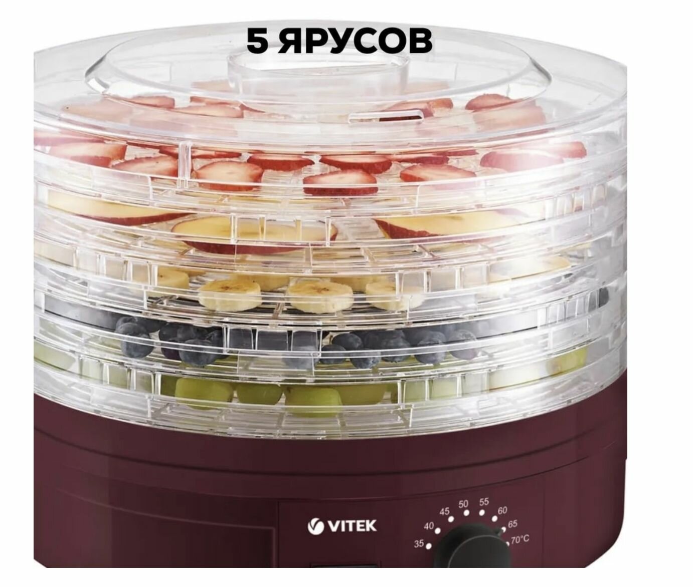 Сушилка для овощей VITEK VT-5061, мощность 350Вт, 5 прозрачных пластиковых поддона.