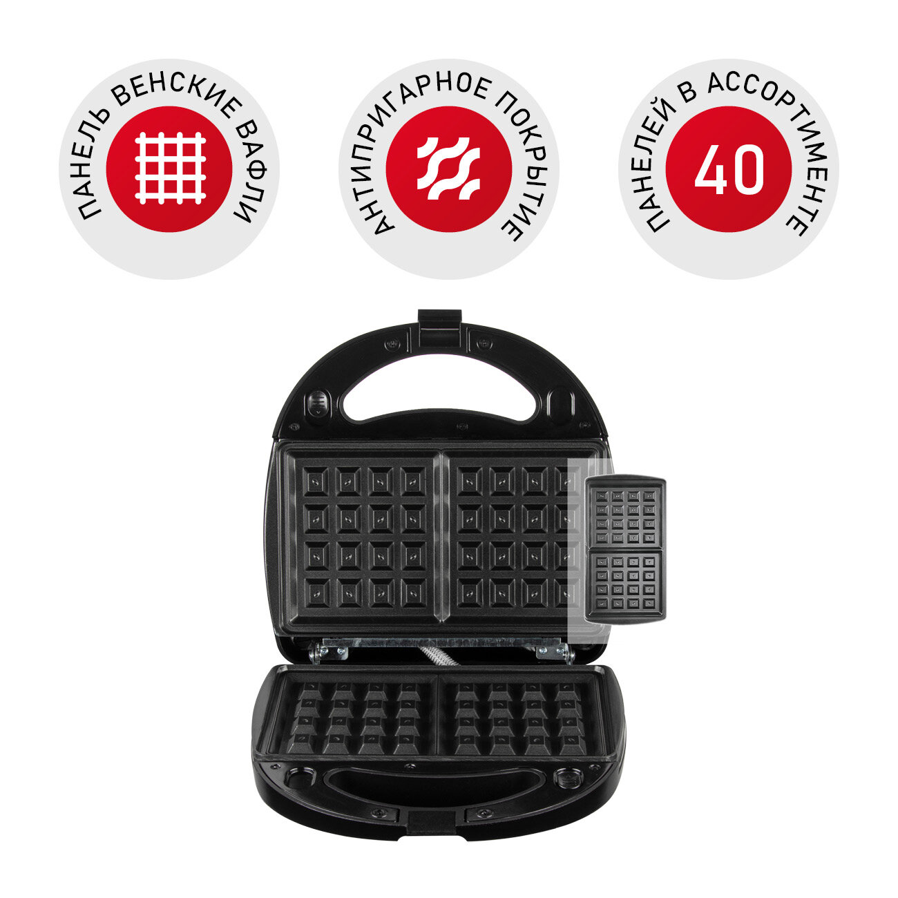 | Плюсы: | Легко готовить вафли, на выбор много панелей, компактный |