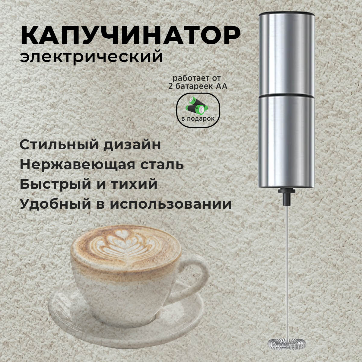 Капучинатор электрический, вспениватель молока для кофе электрический, серебристый, нержавеющая сталь интересное: