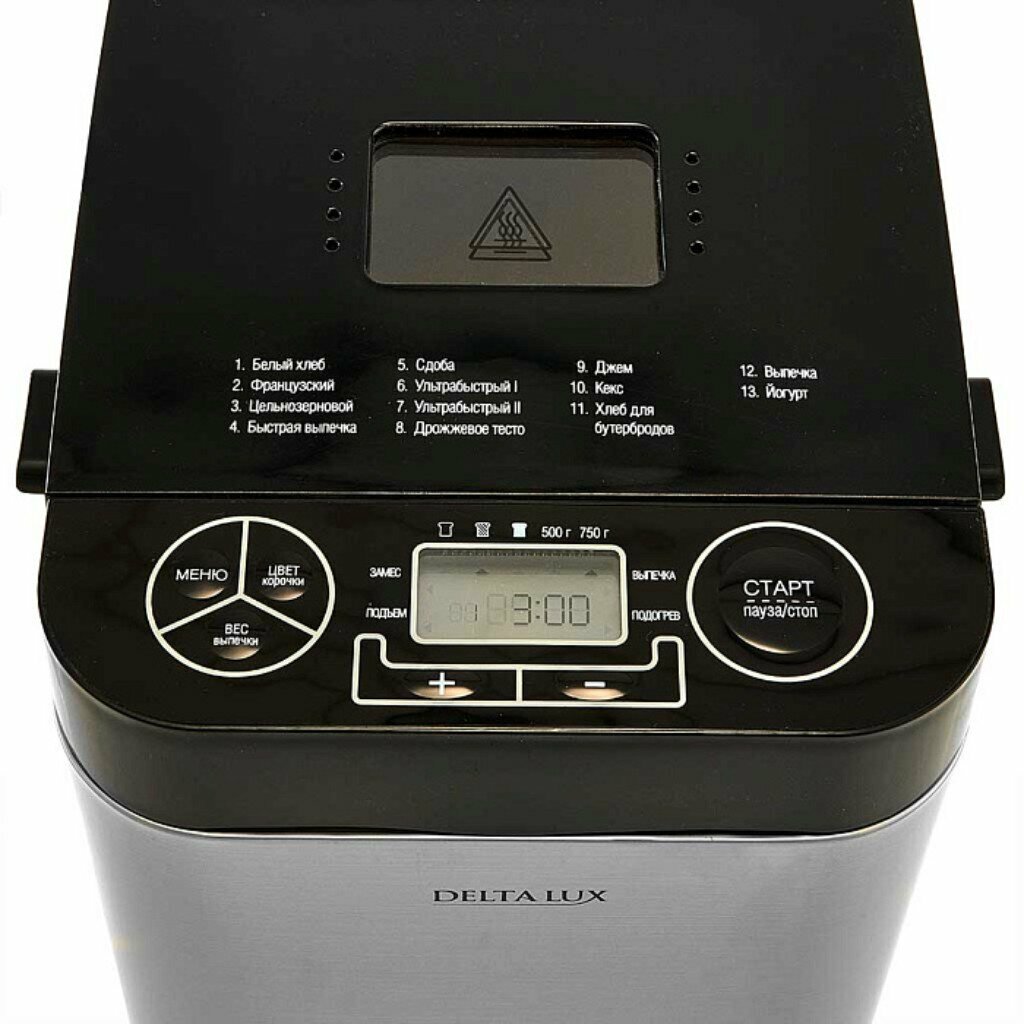 Хлебопечь Delta LUX DL-8008В, вес бухан.750гр, 13 программ, серебристый с черным интересное: