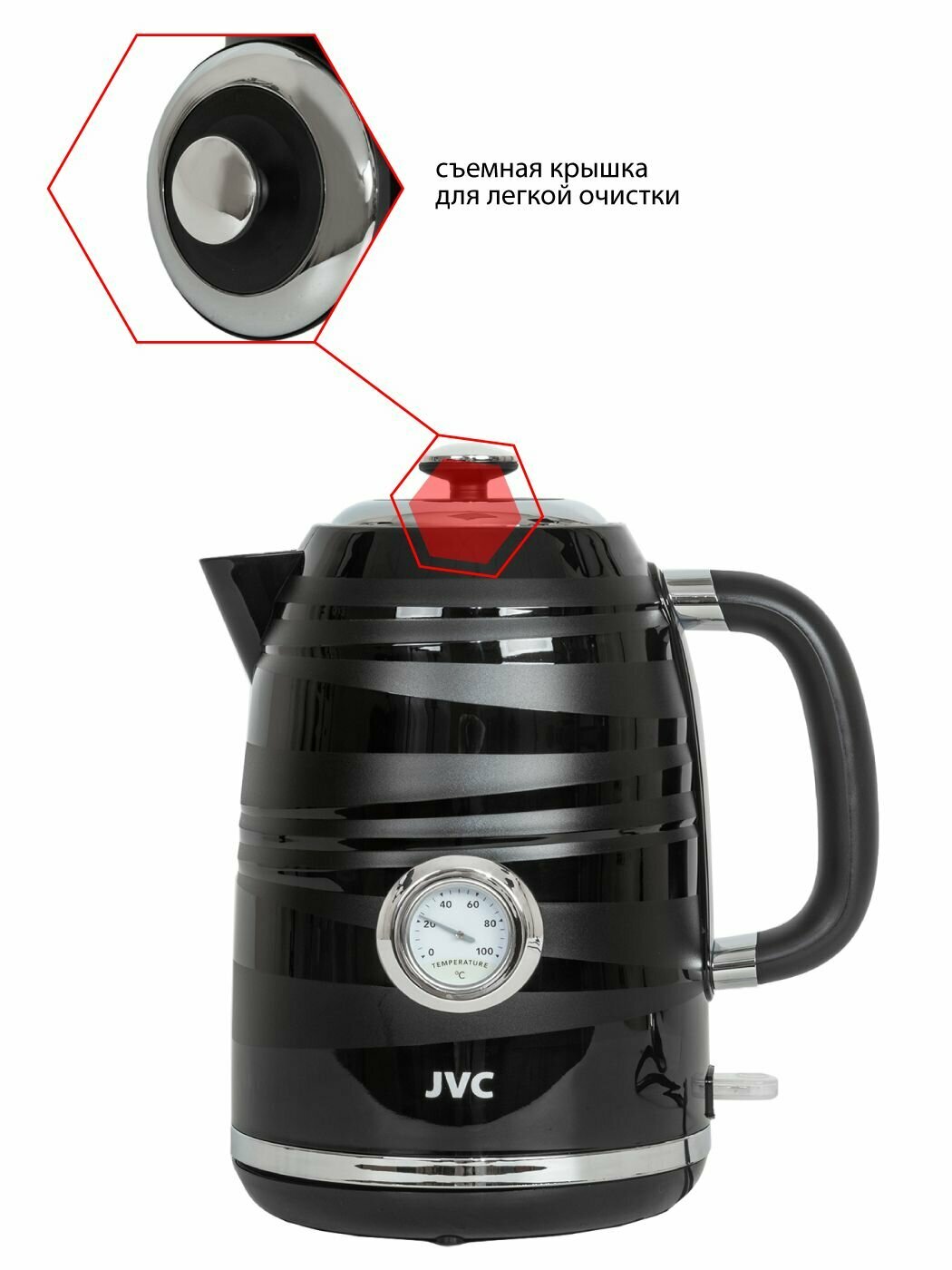 Чайник электрический JVC JK-KE1745 1,7 л с датчиком температуры, контроллер STRIX, съемная крышка, съемный фильтр от накипи, 2200 Вт интересное: