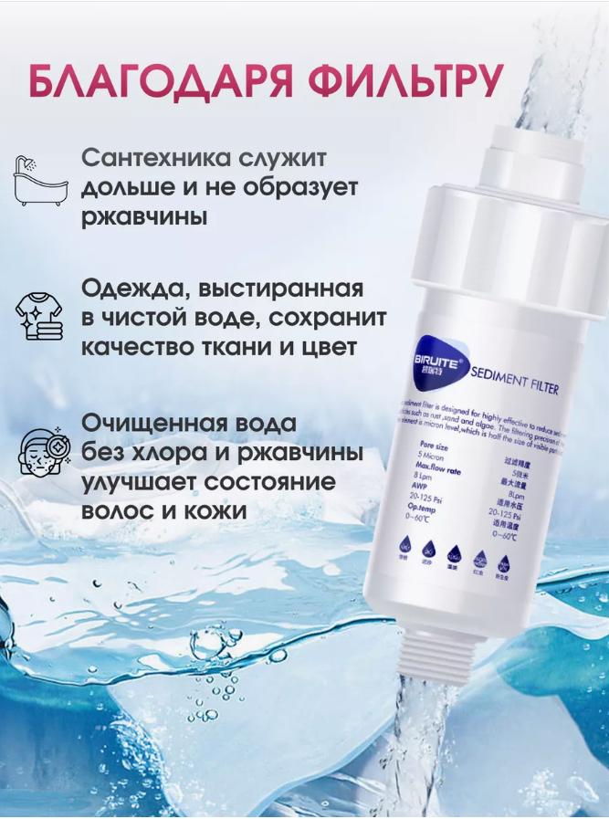 Картридж для душевого фильтра Biruite, сменный фильтр, 2 штуки интересное: