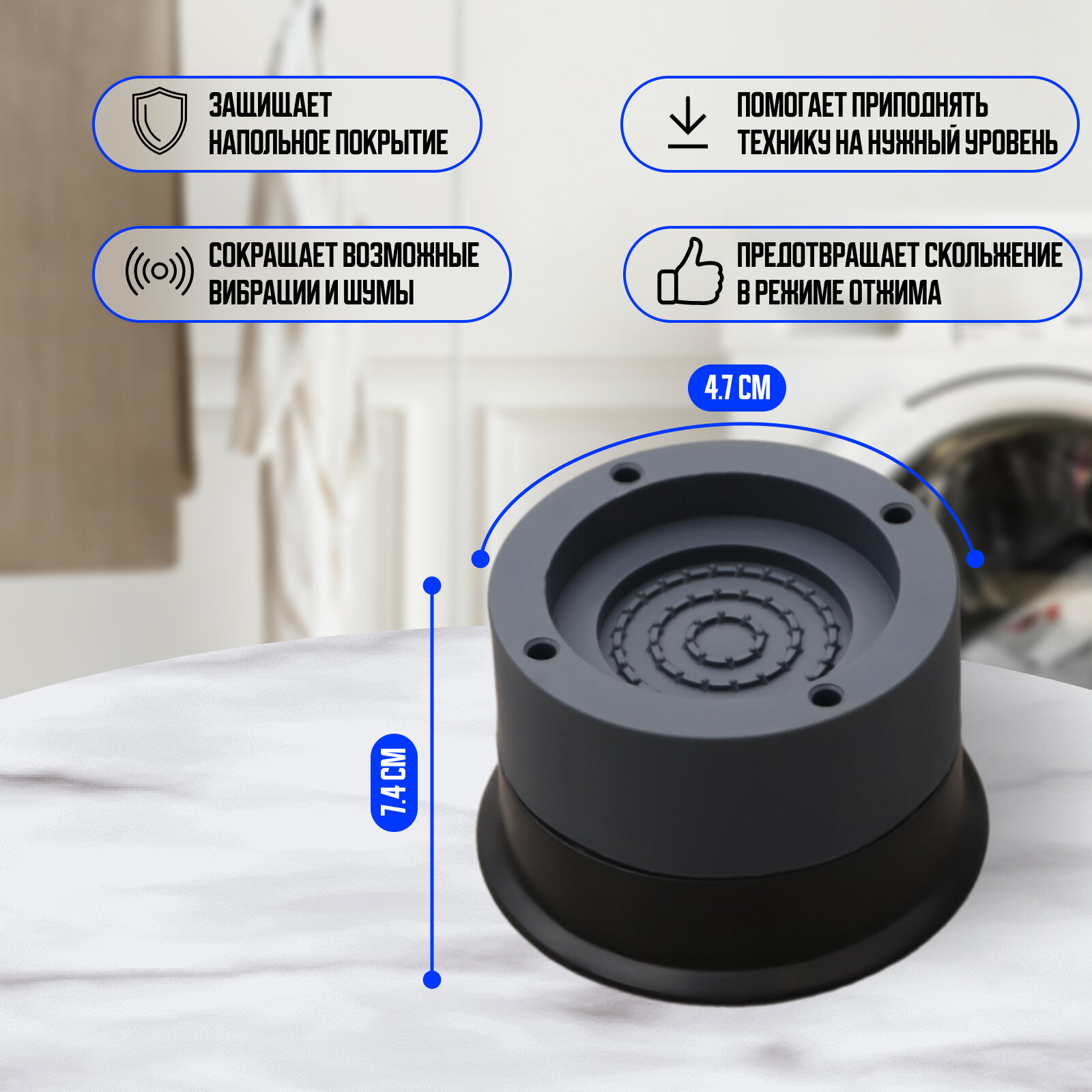 Подставки антивибрационные, 4 шт, 7,4×4,6 см, d=4,7 см интересное: