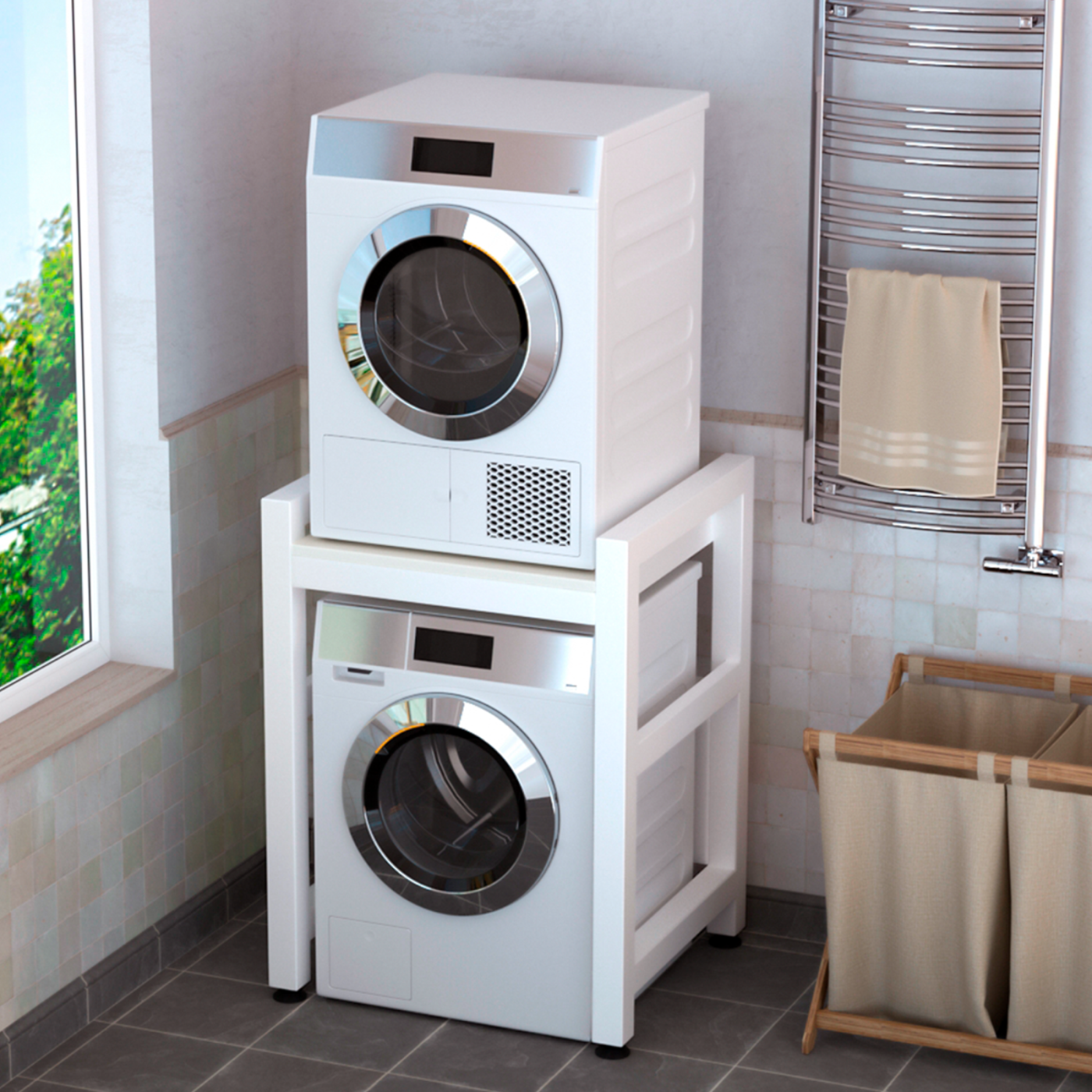 Купить Усиленный стеллаж для стиральной и сушильной машины, белый каркас, белый