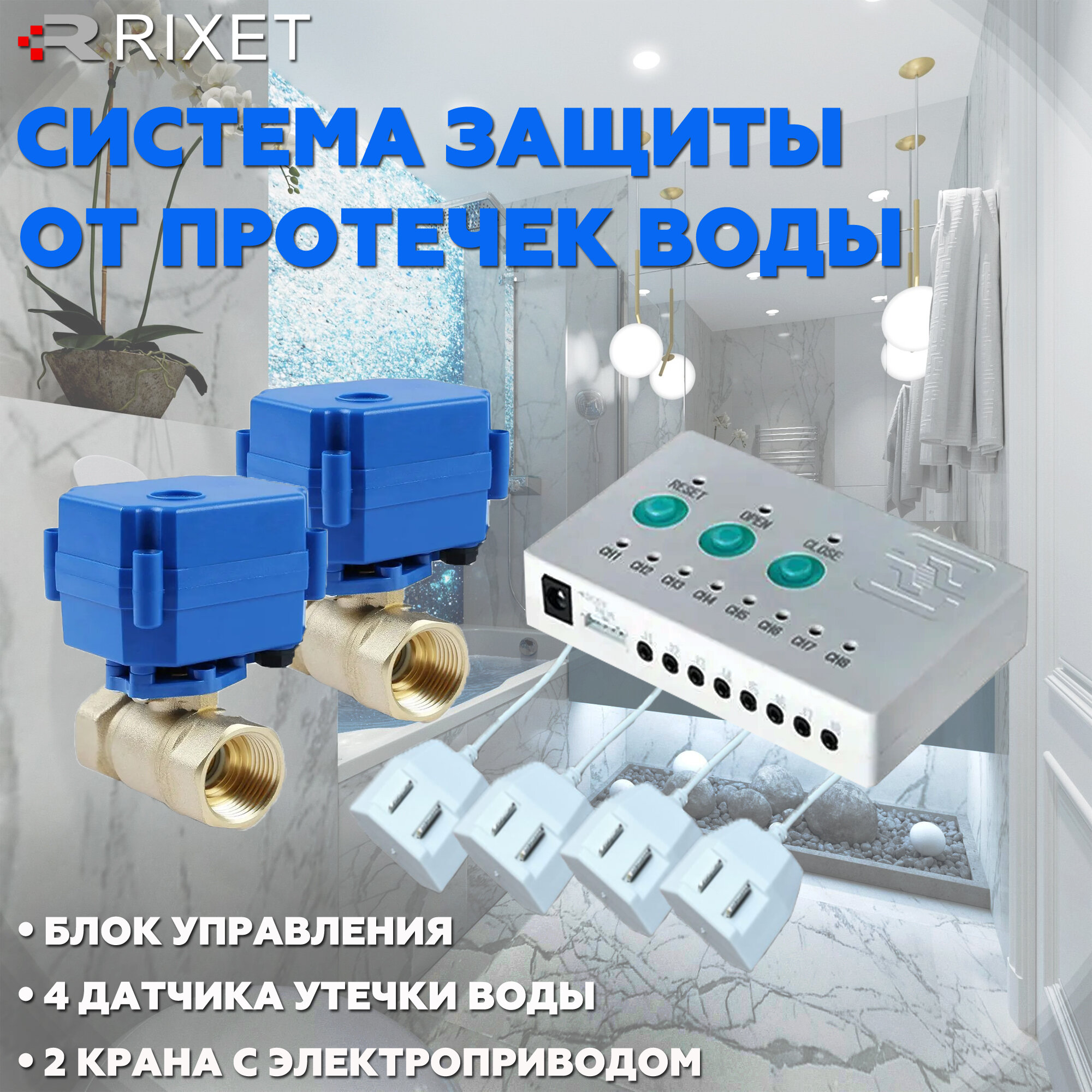 Купить Система защиты от протечек воды Rixet 1/2", 2 крана с электроприводом и 4 датчика