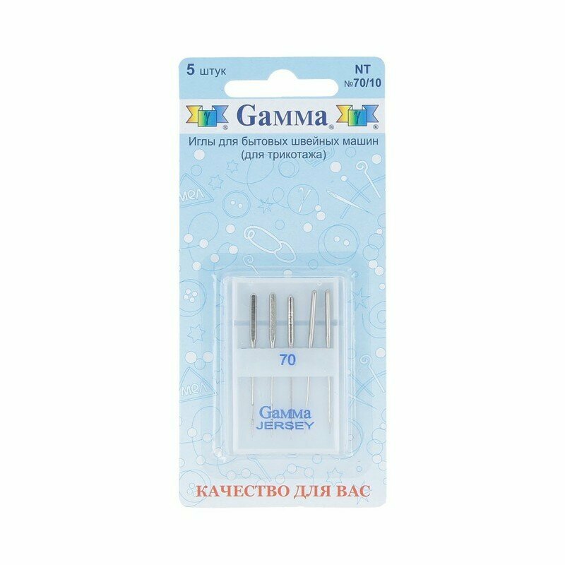 Купить Иглы для швейных машин "Gamma" NT № 70 для трикотажа 5 шт. в блистере