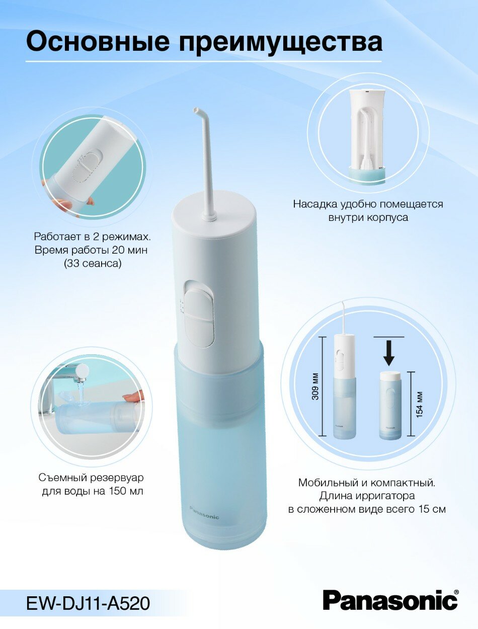 Ирригатор Panasonic EW-DJ11-А520 + средство для очистки ирригатора