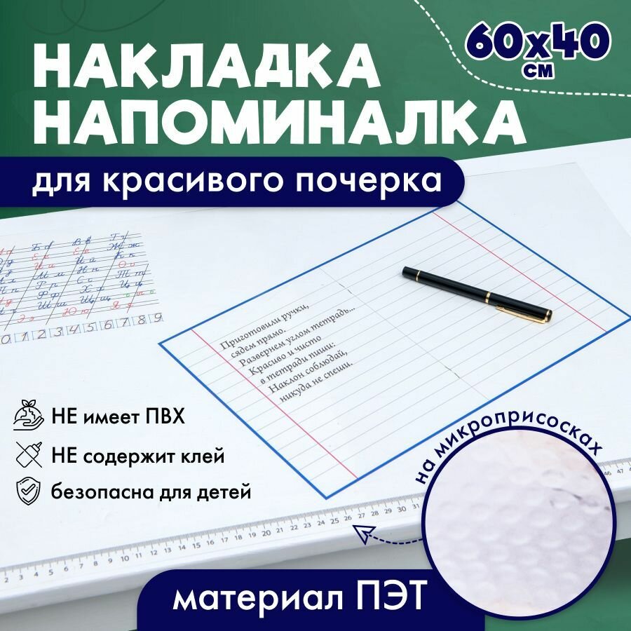 Купить Накладка-напоминалка на стол для красивого почерка прозрачная на микроприсосках