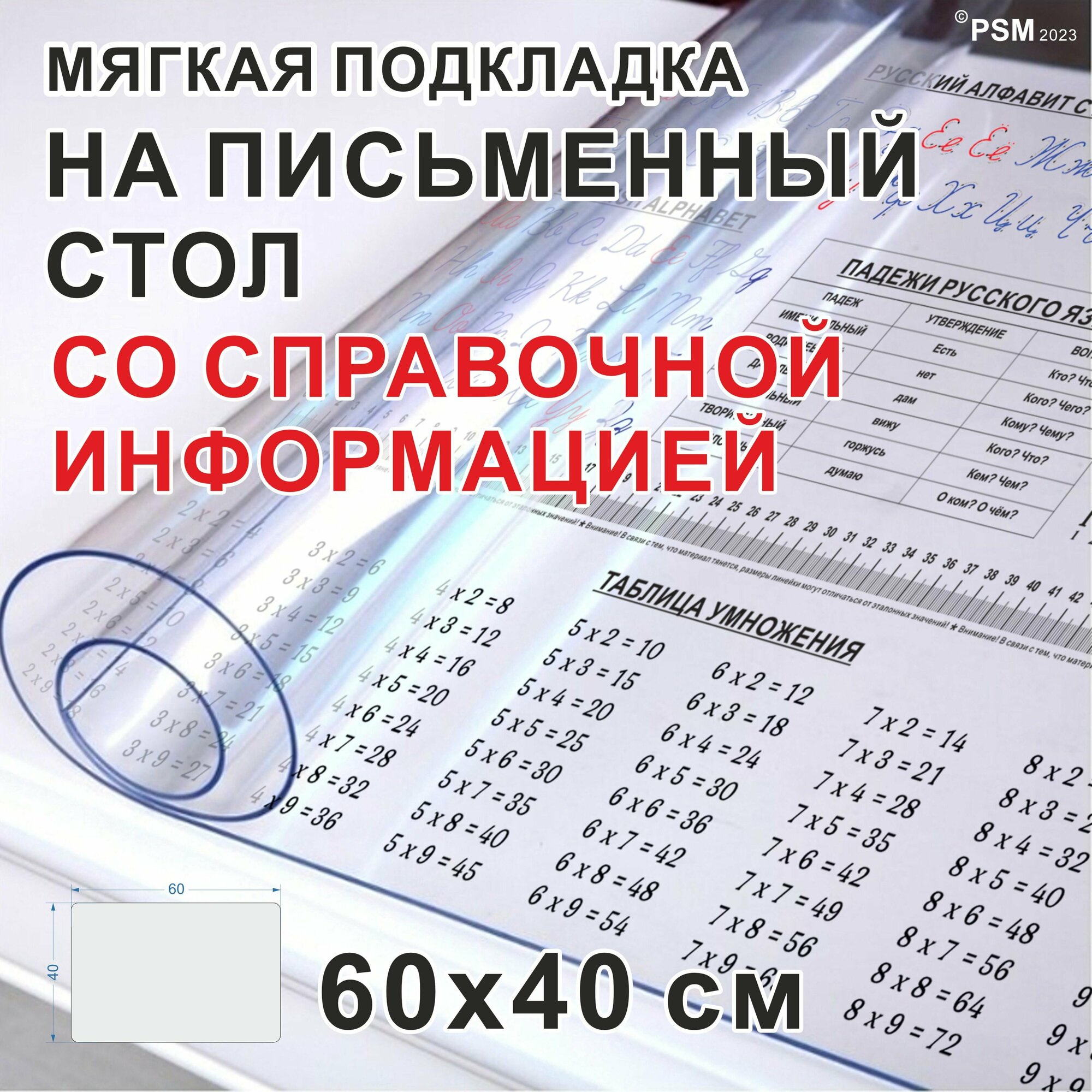 Купить Коврик на письменный стол со справочной информацией (с прописями), прозрачный, 60х40 см