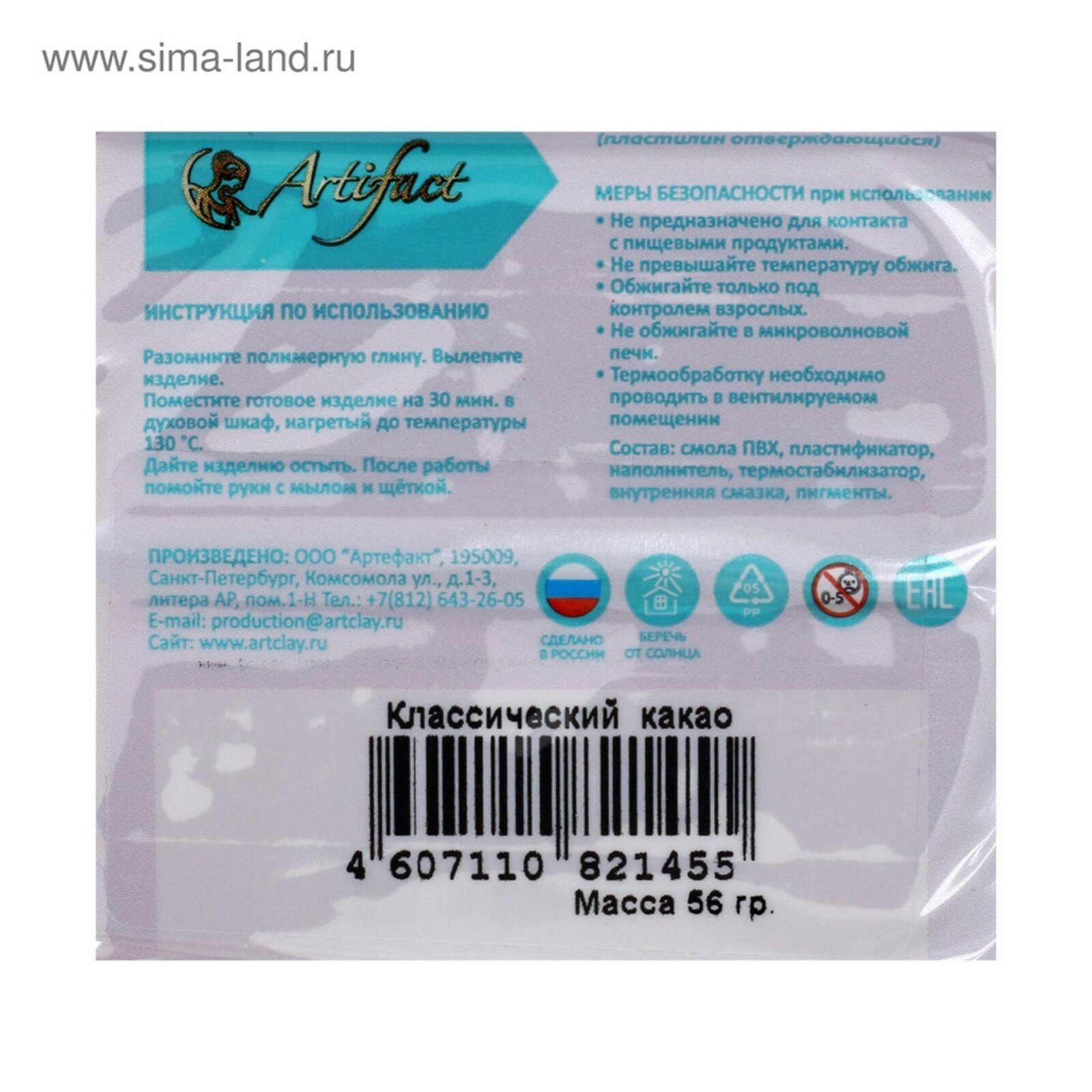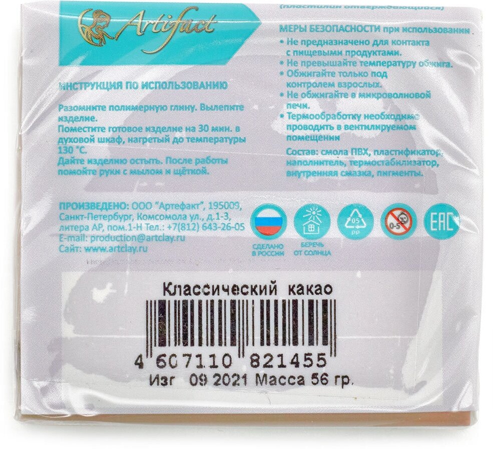 | Подробная комплектация | Полимерная глина запекаемая Артефакт Классическая, брус 50-56 г |