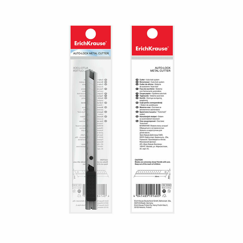 Нож канцелярский Erich Krause металл. auto-lock, 18 мм, металлик