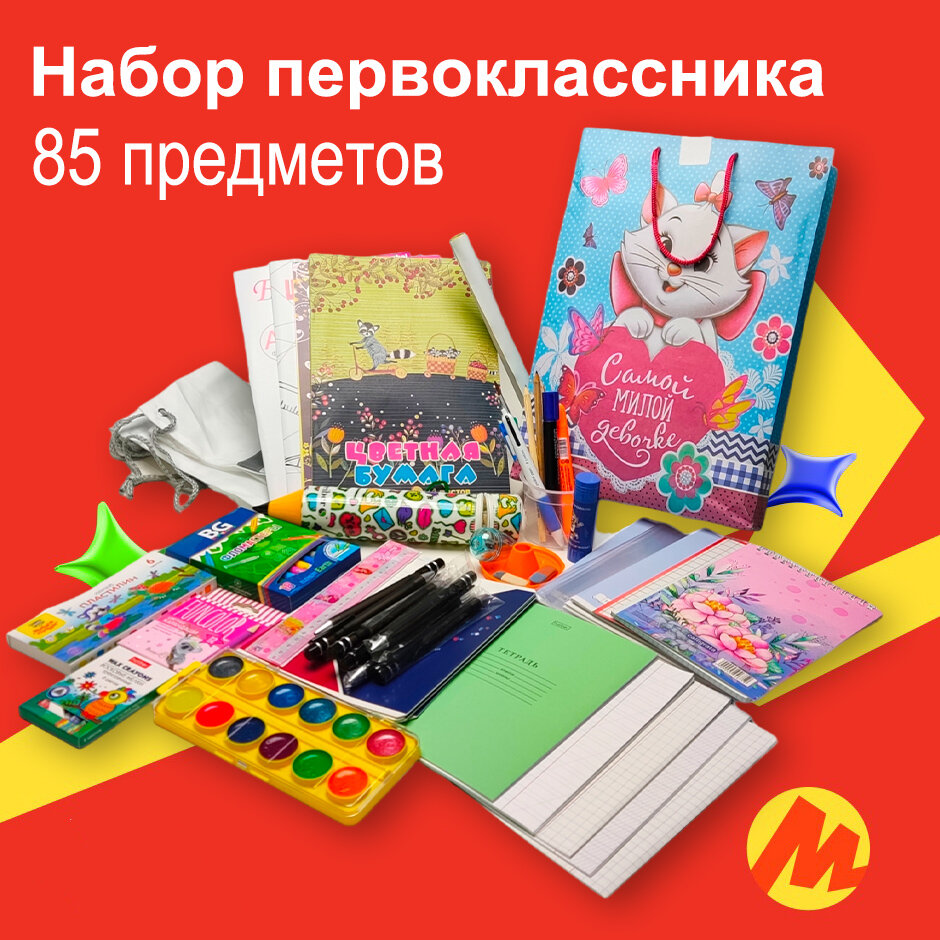 Набор первоклассника с 1 по 4 классы, 85 предметов. Для девочек. интересное:
