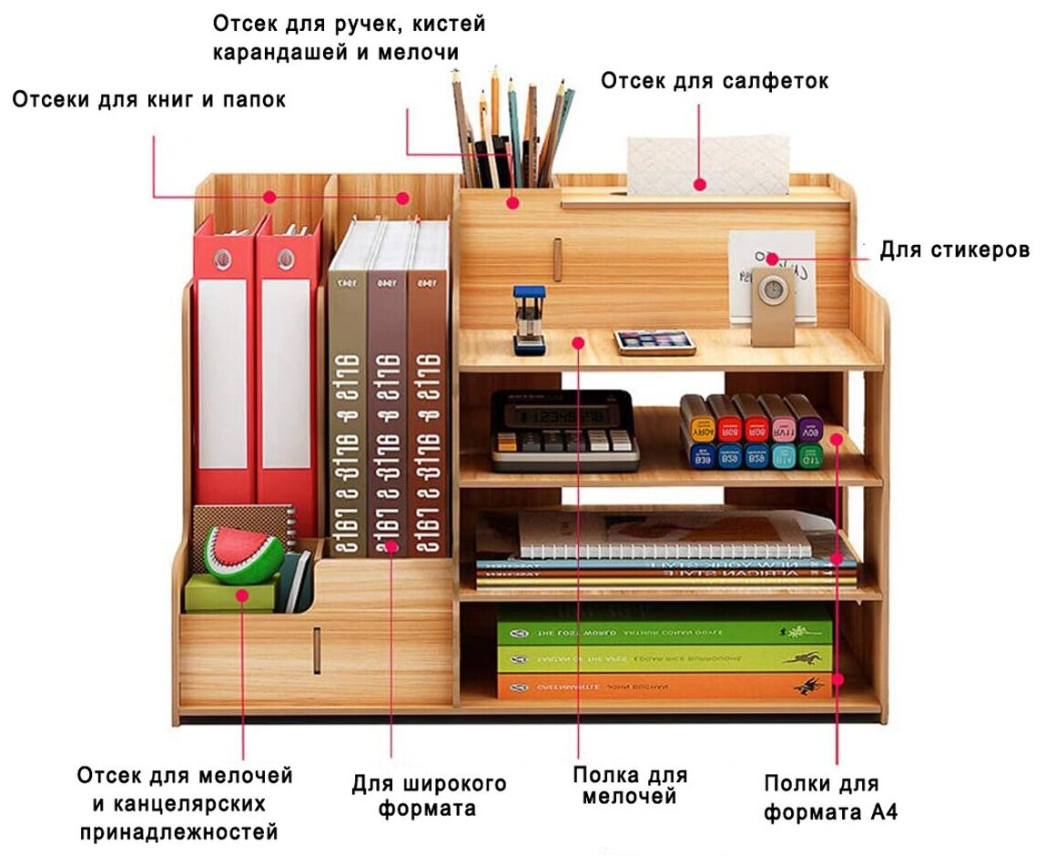 Органайзер деревянный большой настольный для канцелярских принадлежностей 39x29x28 см. интересное: