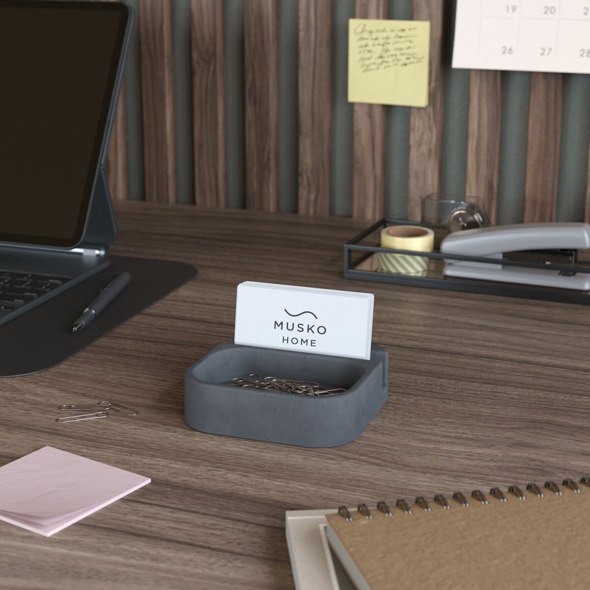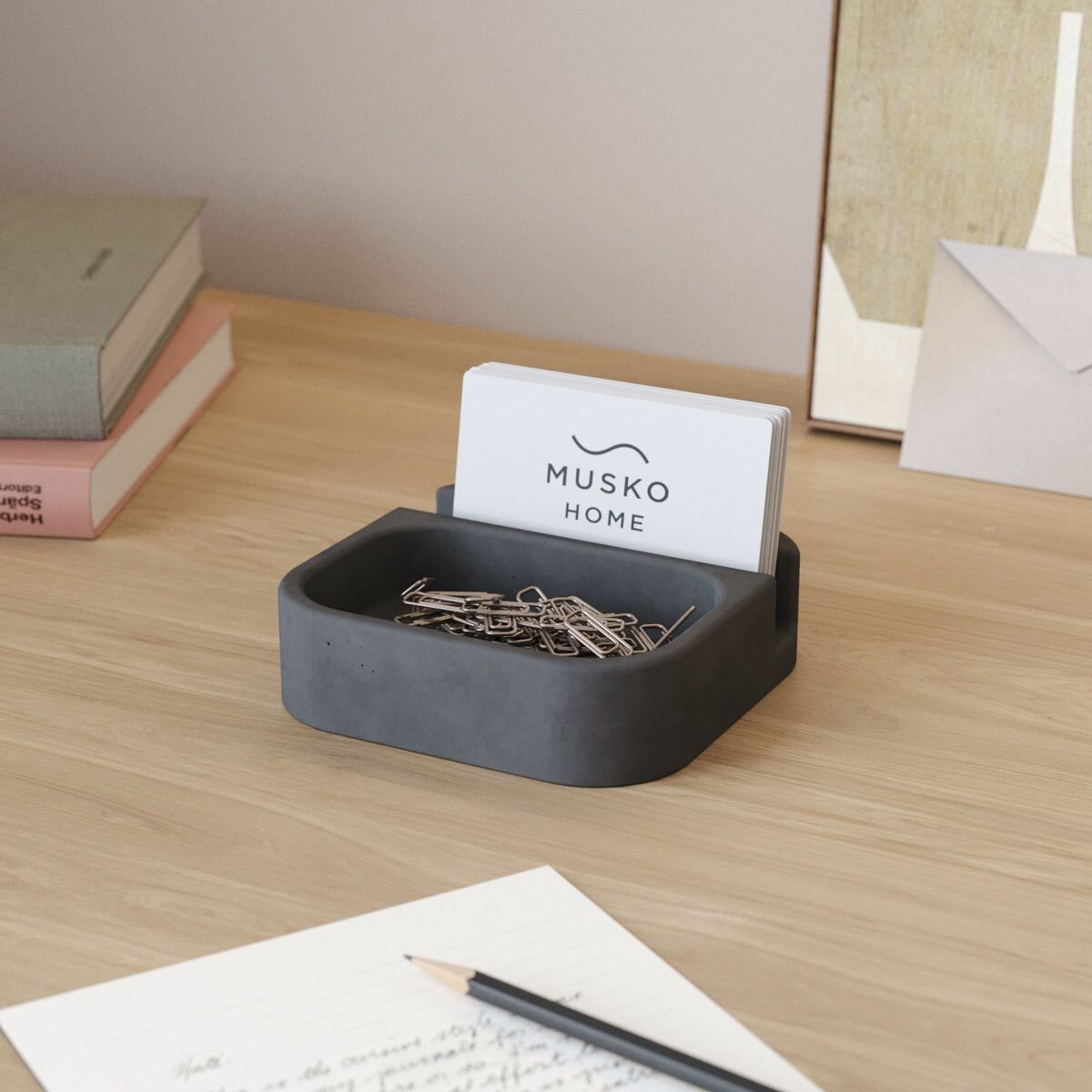 Подставка, держатель для визиток Oliver, визитница, бетон, графитовая матовая интересное: