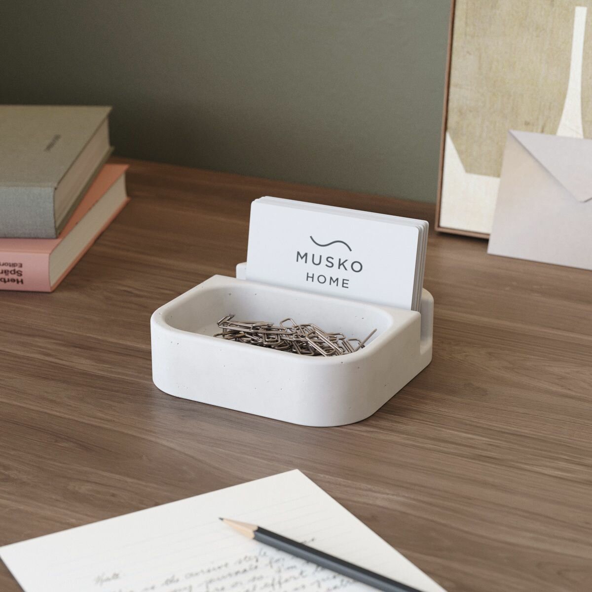 Купить Подставка, держатель для визиток Oliver, визитница, бетон, белая матовая