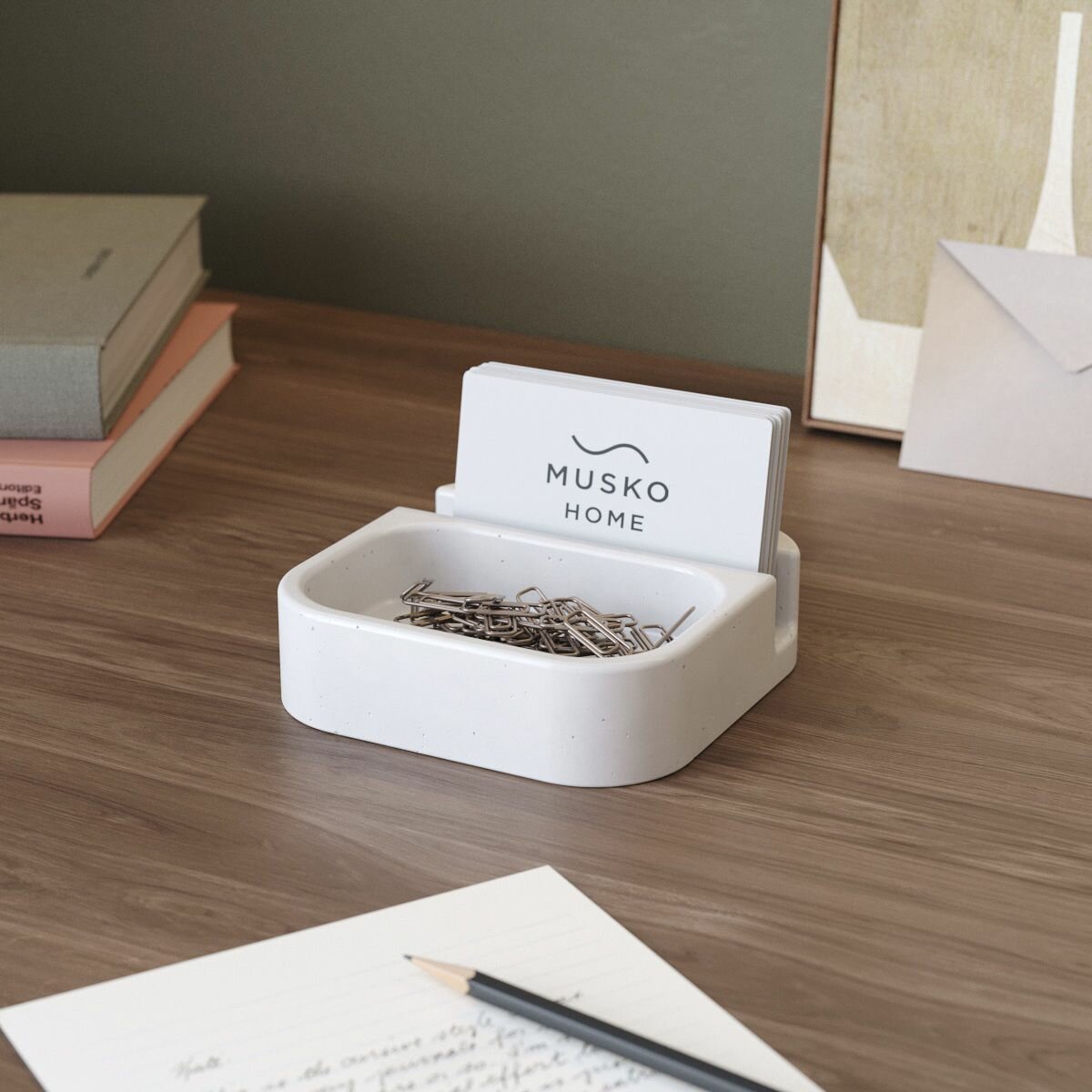 Купить Подставка, держатель для визиток Oliver, визитница, бетон, белая глянцевая