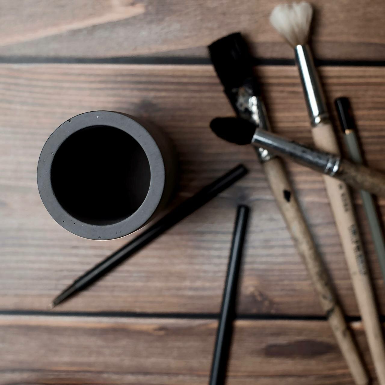Органайзер ZEMLYANKA для хранения канцелярии. Подставка для канцтоваров для офиса. Стакан для ручек и карандашей бетонный. Контейнер маркеров и кистей.