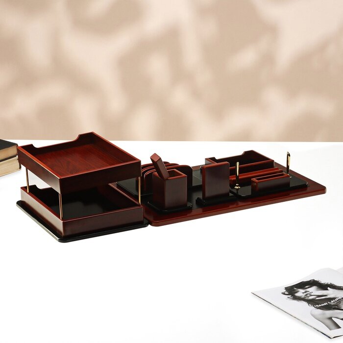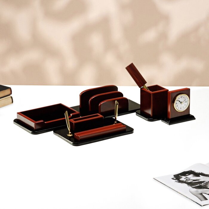| В комплекте | лоток для бумаг, нож канцелярский, подставка, часы |