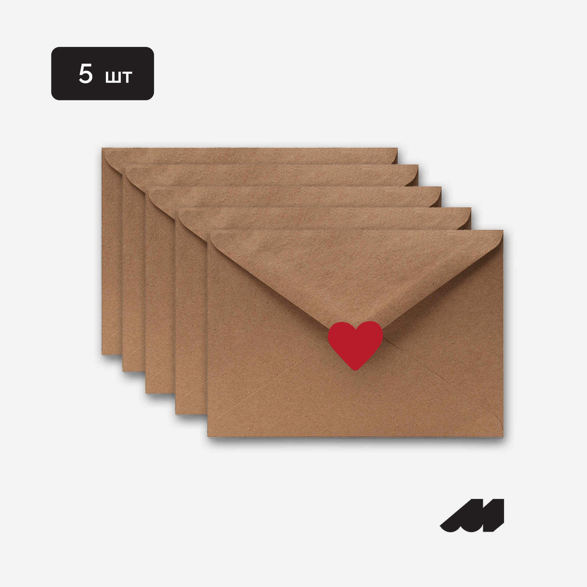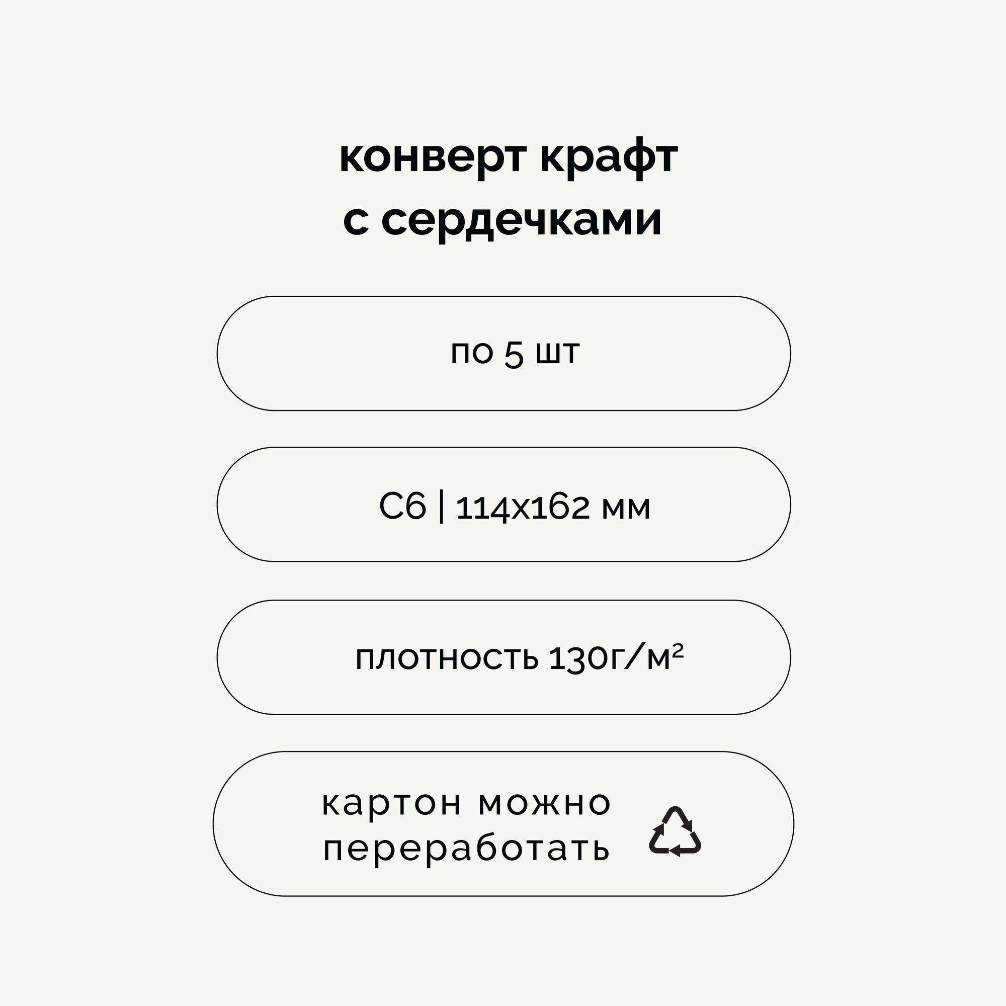 Подарочные конверты / крафт без печати / 5 шт / с сердечками интересное: