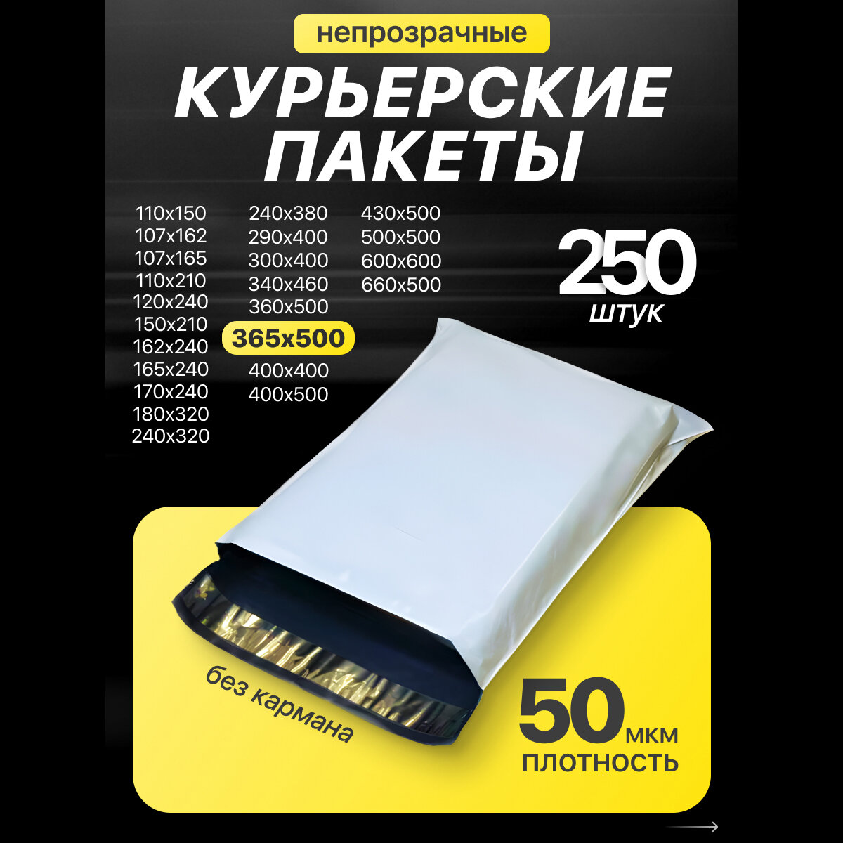 Курьер-пакет 365х500+40мм (50 мкм) 500 шт, упаковочный сейф-пакет без кармана
