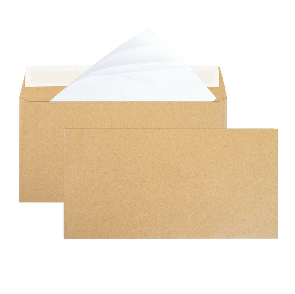 Купить Крафт конверт с прямым клапаном (Е65 11х22 см), упаковка 25 штук