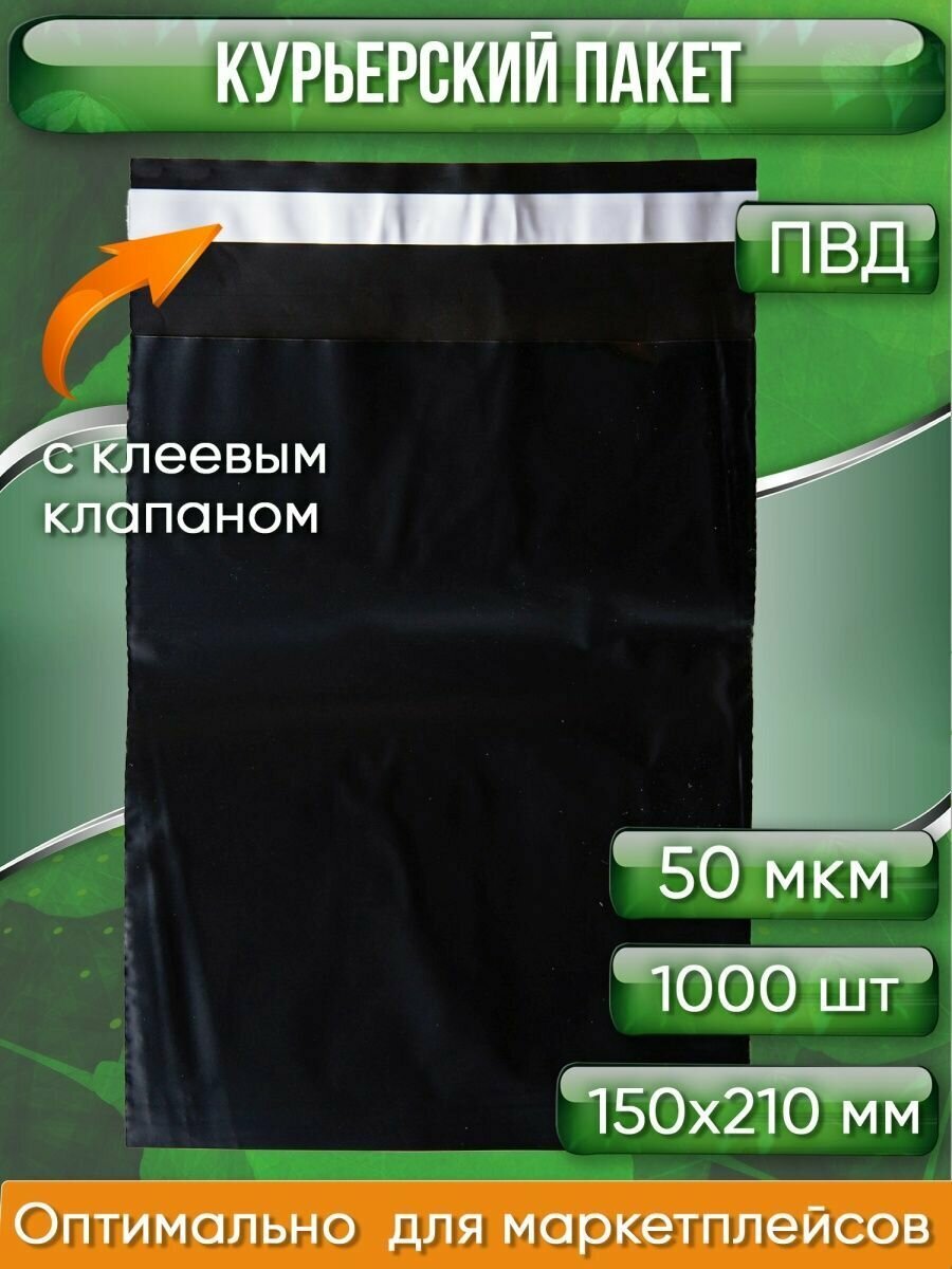 Курьерский пакет, чёрный, 150х210+40, без кармана, 50 мкм, 1000 шт. интересное: