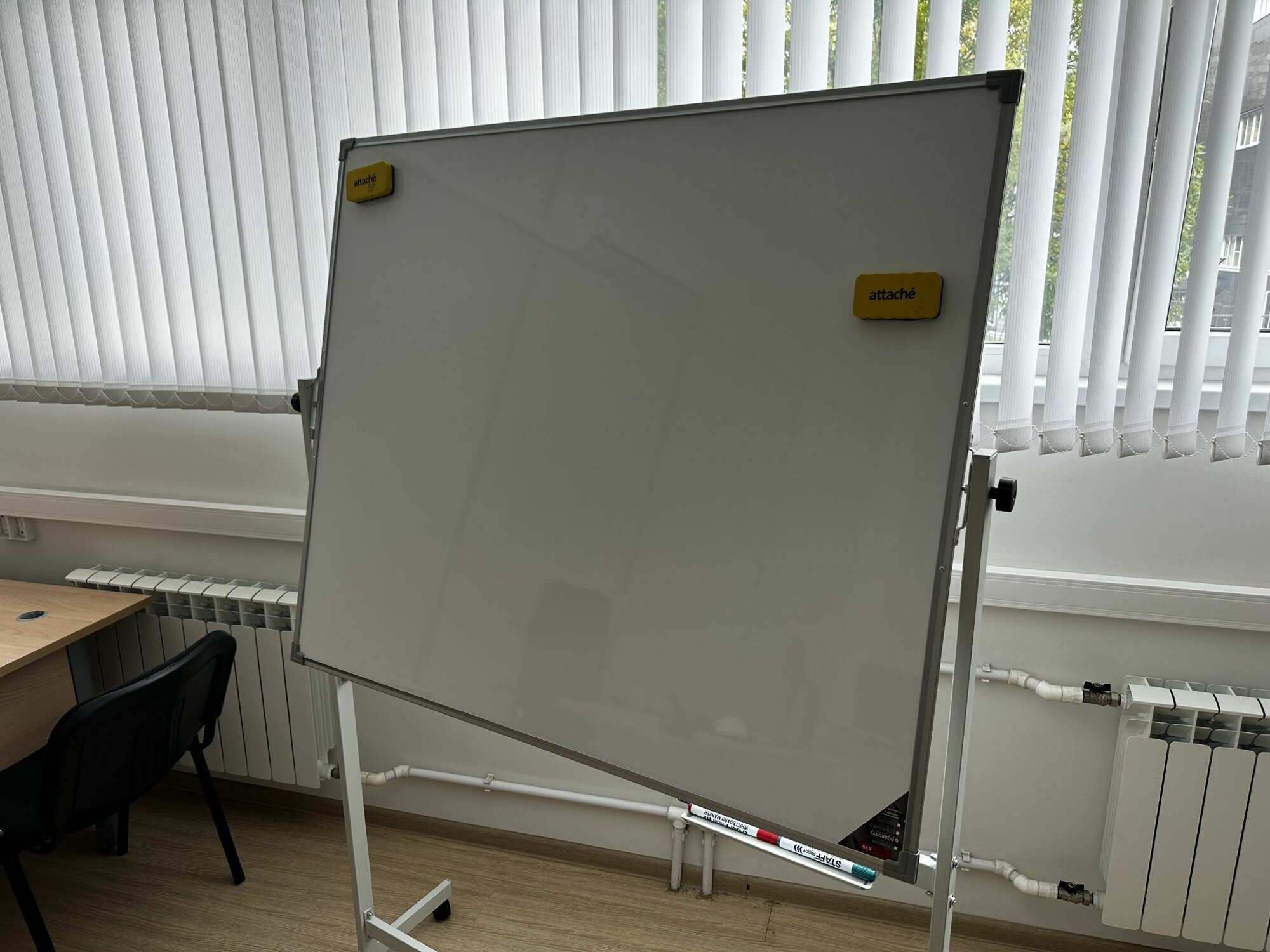 | Особенности конструкции | двухсторонняя / держатель для бумаги / напольное размещение / поворотный механизм / полка для аксессуаров / укрепленные пластиковые уголки / фиксатор угла наклона |