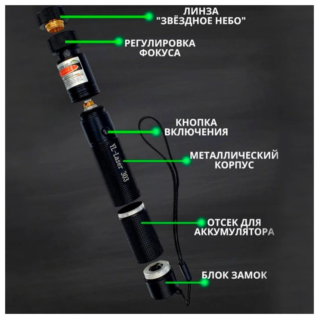 Лазерная указка с зелёным цветом луча Green Laser 303 интересное: