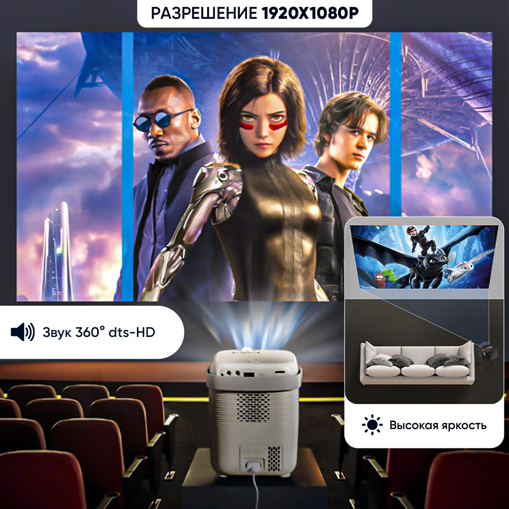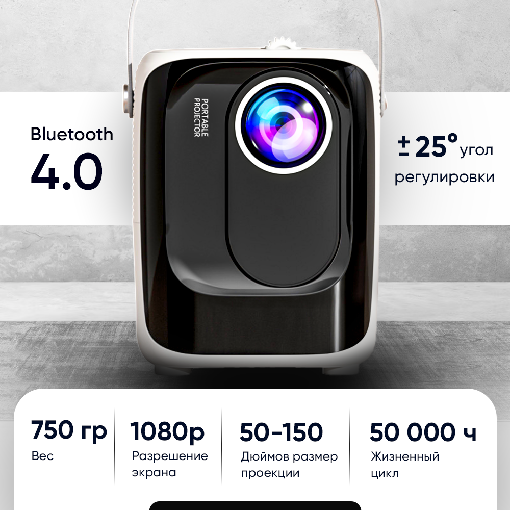 Проектор Умный, 1920×1080 Full HD, Черный